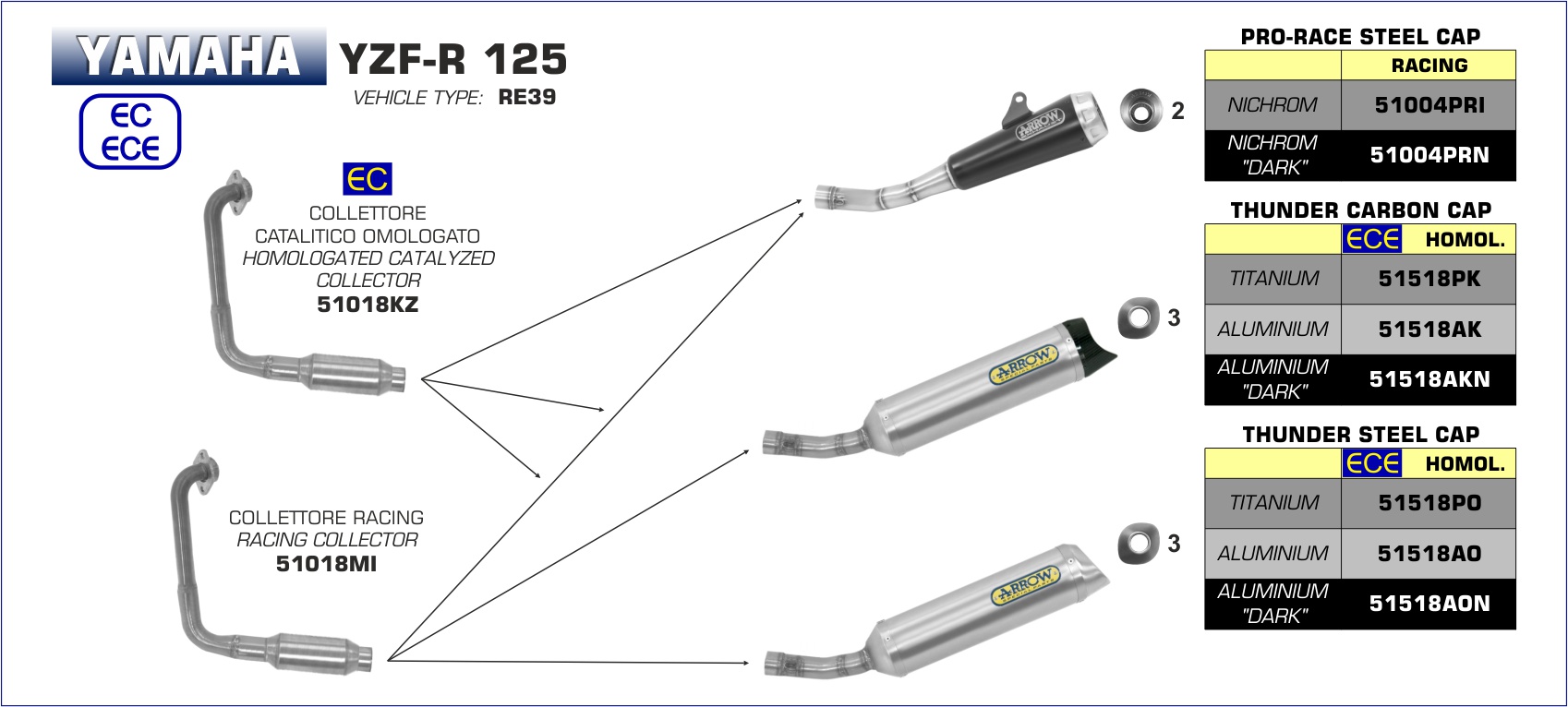 ARROW - 51018MI COLLETTORE RACING YAMAHA YZF-R 125 19-20