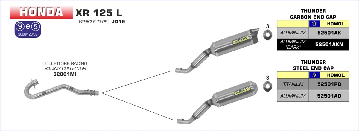 ARROW - 52501AO TERMINALE OFF-ROAD THUNDER ALLUMINIO OMOLOGATO HONDA XR 125 L 04-05