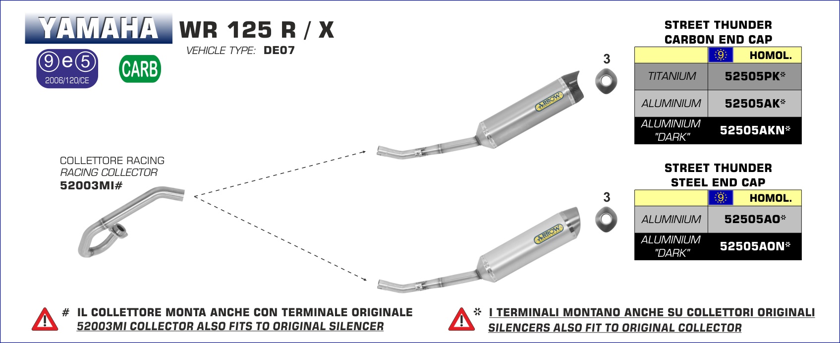 ARROW - 52505AK TERMINALE STREET THUNDER ALLUMINIO FONDELLO CARBY YAMAHA WR 125 R/X 09-16