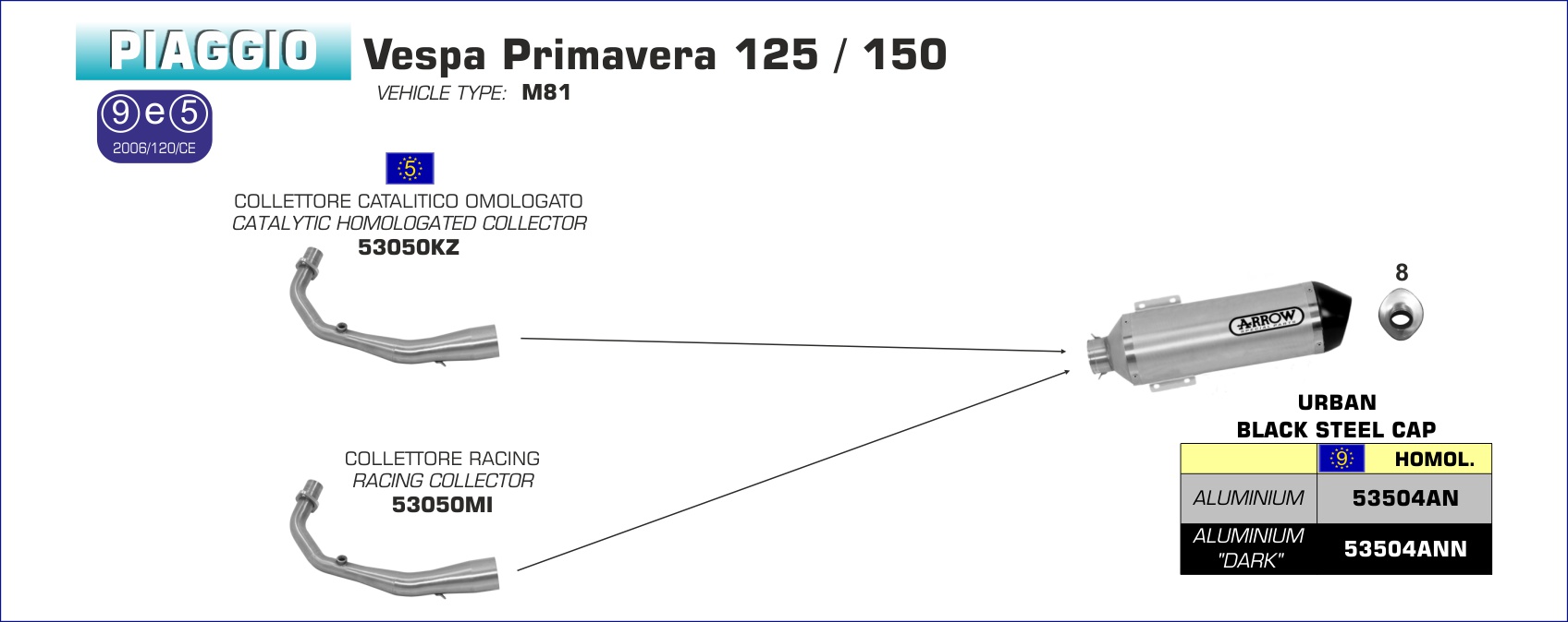 ARROW - 53050KZ COLLETTORE CATALITICO OMOLOGATO PER SCARICO URBAN PIAGGIO VESPA PRIMAVERA 125/150 14-16