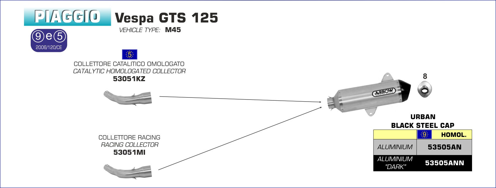 ARROW - 53051MI COLLETTORE RACING PER SCARICO URBAN PIAGGIO VESPA GTS 300I.E. 08-16