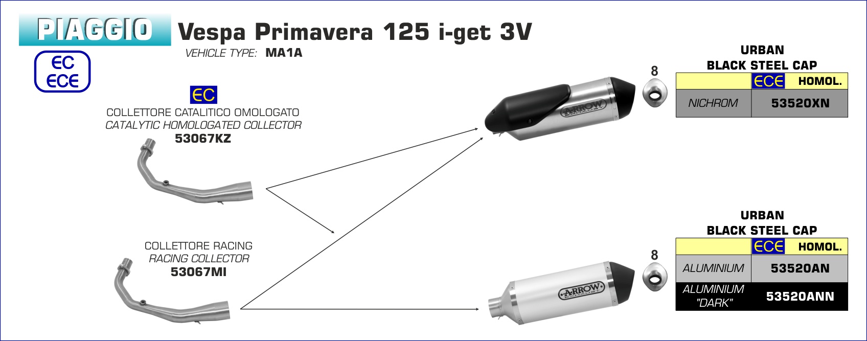 ARROW - 53067KZ COLLETTORE CATALITICO OMOLOGATO PER SCARICO URBAN PIAGGIO VESPA PRIMAVERA I-GET 3V 17-18