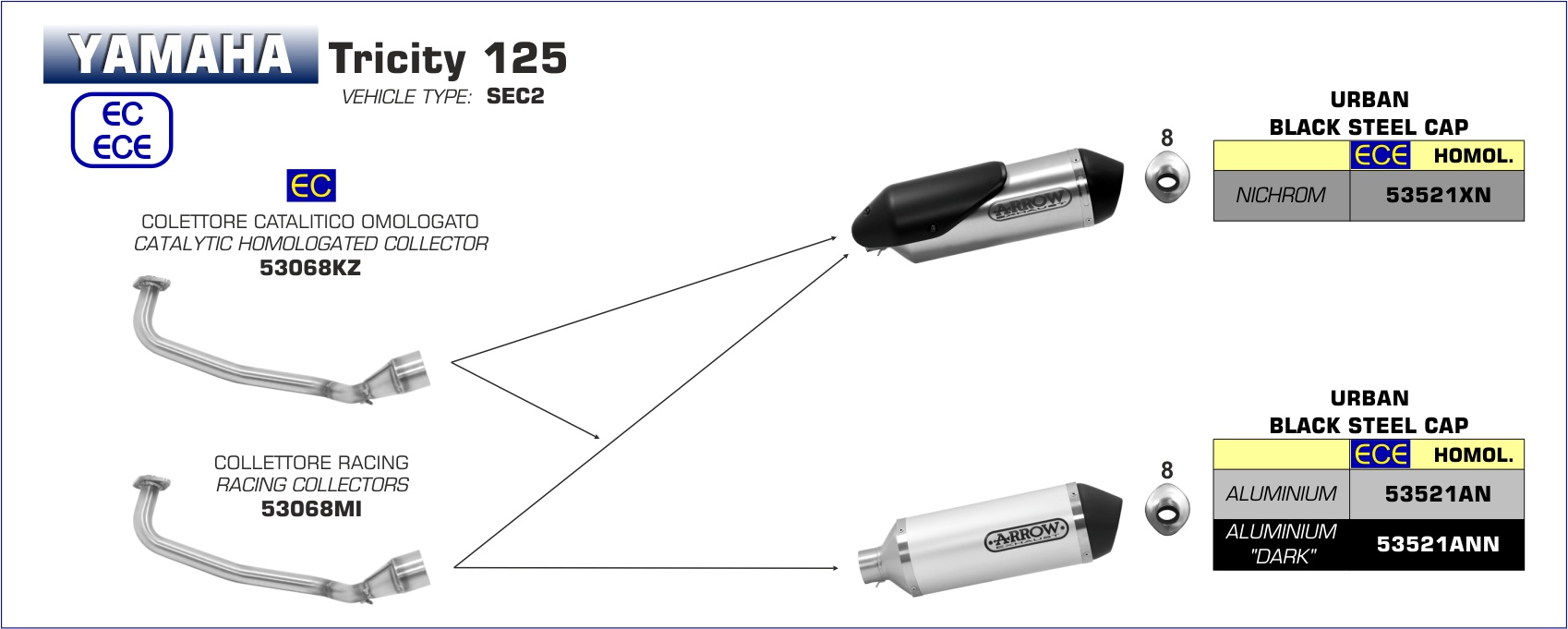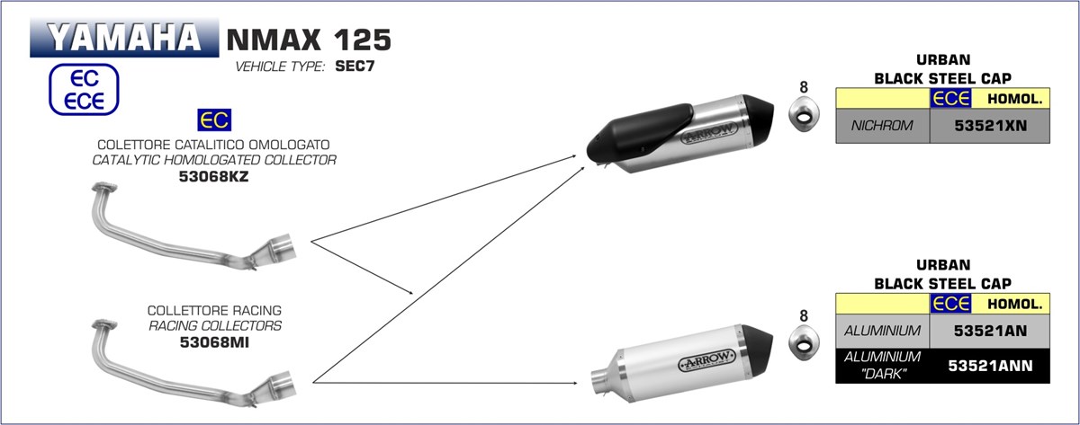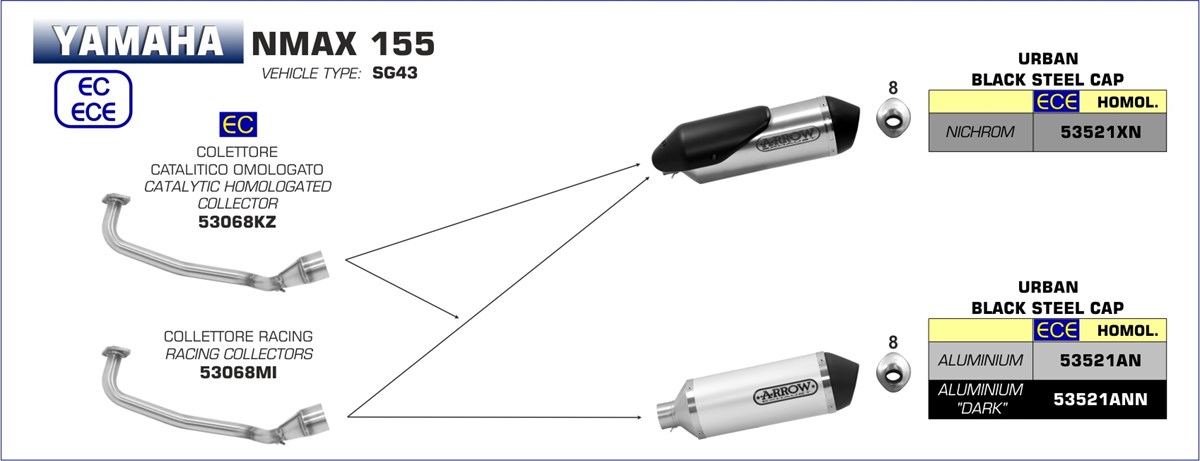 ARROW - 53068KZ COLLETTORE CATALITICO OMOLOGATO PER SCARICO URBAN YAMAHA NMAX 155 17-20