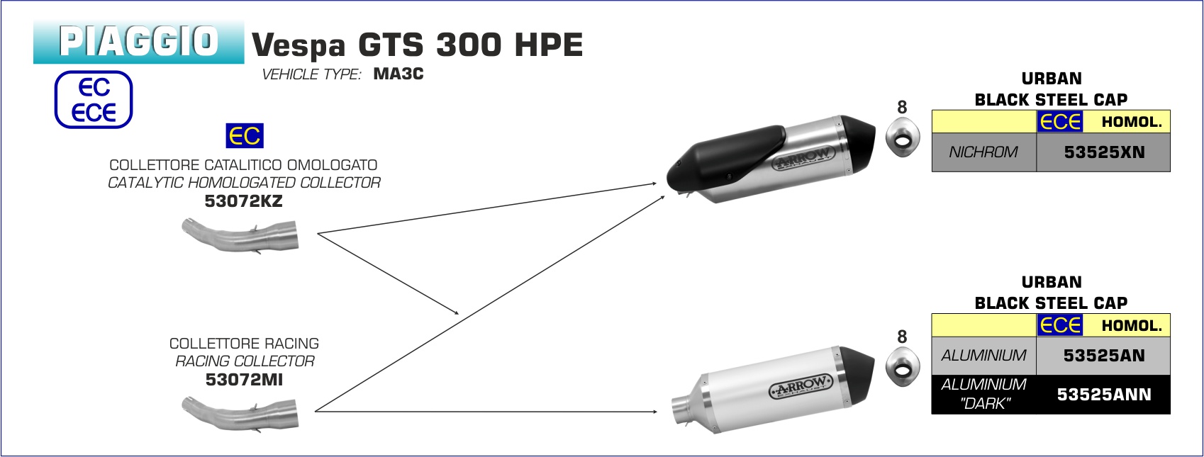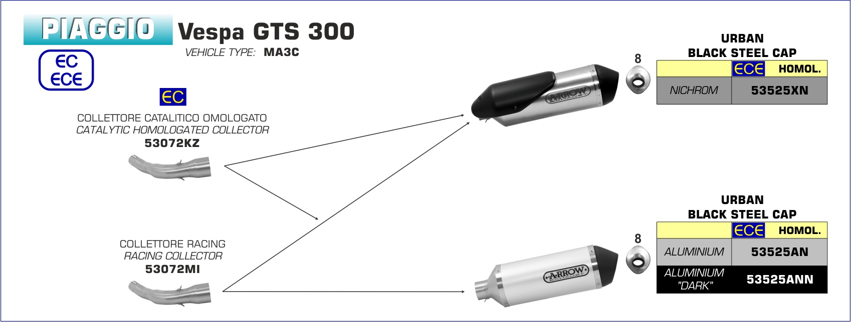 ARROW - 53072KZ RACCORDO CATALITICO OMOLOGATO PER SCARICO URBAN PIAGGIO VESPA GTS 300I.E. 17-18