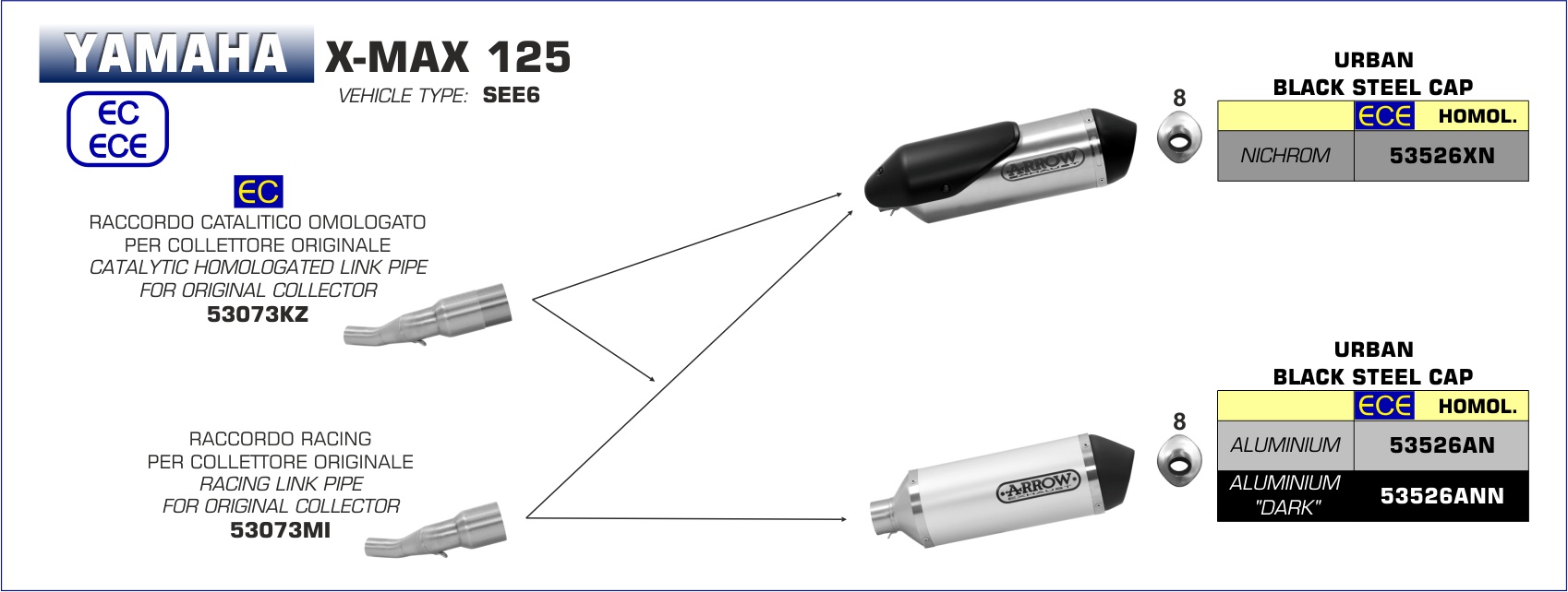 ARROW - 53073MI RACCORDO PER SCARICO URBAN YAMAHA X-MAX 125 18-20