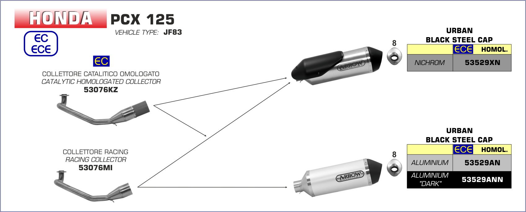 ARROW - 53076KZ COLLETTORE CATALITICO OMOLOGATO PER SCARICO URBAN HONDA PCX 125 18-19