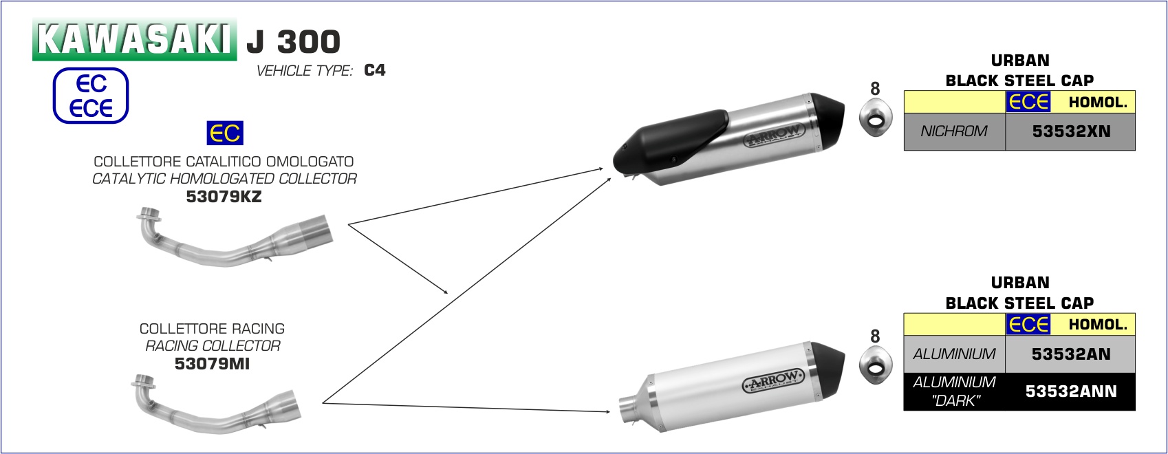 ARROW - 53079MI COLLETTORE RACING PER SCARICO URBAN KAWASAKI J 300 17-20
