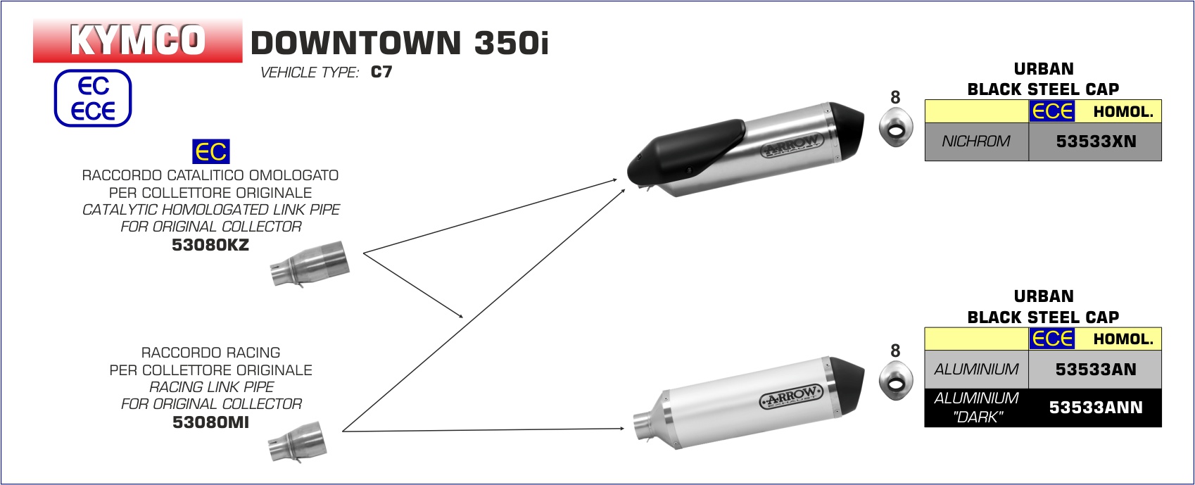 ARROW - 53080MI RACCORDO RACING PER COLLETTORI ORIGINALI KYMCO DOWNTOWN 350I 16-19
