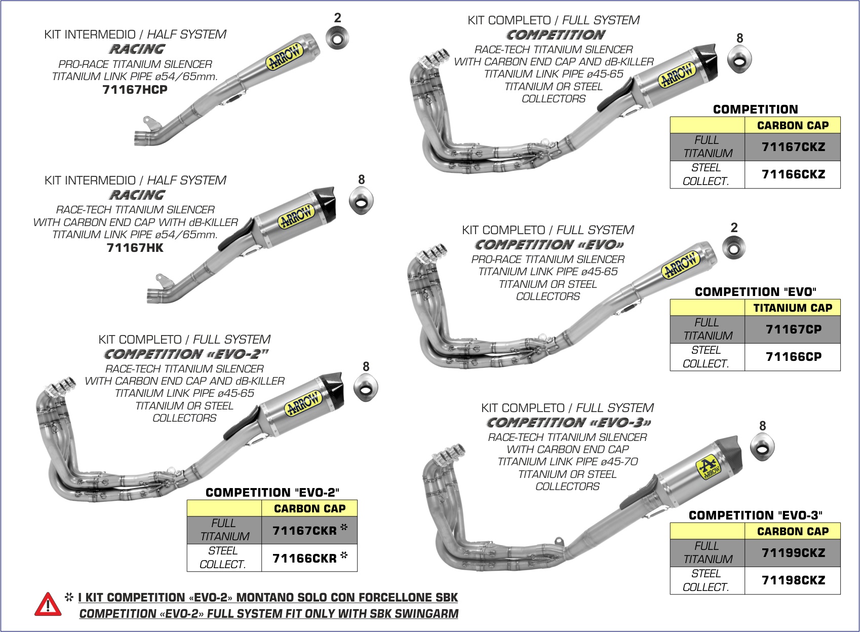 E' un componente fondamentale di un sistema di scarico e grazie a loro si ottengono importanti guadagni in potenza e coppia. Sono realizzati in acciaio inox AISI 304 e, nelle versioni Competition, sono disponibili anche in lega di titanio. I kit collettori Arrow nascono dal lavoro accurato del nostro reparto R&D, forte della esperienza e dei risultati accumulati nelle piste di tutto il mondo. A questo fondamentale ingrediente si aggiunge poi il tocco dei nostri "mastri" prototipisti: diametri, curve, passaggi, variazioni di sezione, componenti, saldature e layout sono accuratamente verificati per ottenere un prodotto altamente performante, affidabile e dall'inconfondibile stile Arrow. A seconda del motore e del suo schema di accensione, viene scelta la miglior configurazione possibile per il raggruppamento dei collettori stessi fino al terminale. Si parla perci di schemi 4:2:1, 4:2:2, 2:1:2, 4:2:1:2, 3:1:1 e cos via; una delle indicazioni pi importanti da seguire quando si inizia a progettare e realizzare un impianto di collettori. Per avere un flusso di gas il pi possibile scorrevole, le giunzioni tra i vari componenti dei kit collettori sono realizzate con parti ricavate dal pieno con macchine a controllo numerico. Per lo stesso motivo le saldature, oltre ad essere esteticamente perfette, devono essere poco ?invasive? e non devono ridurre la sezione di passaggio dei gas di scarico.