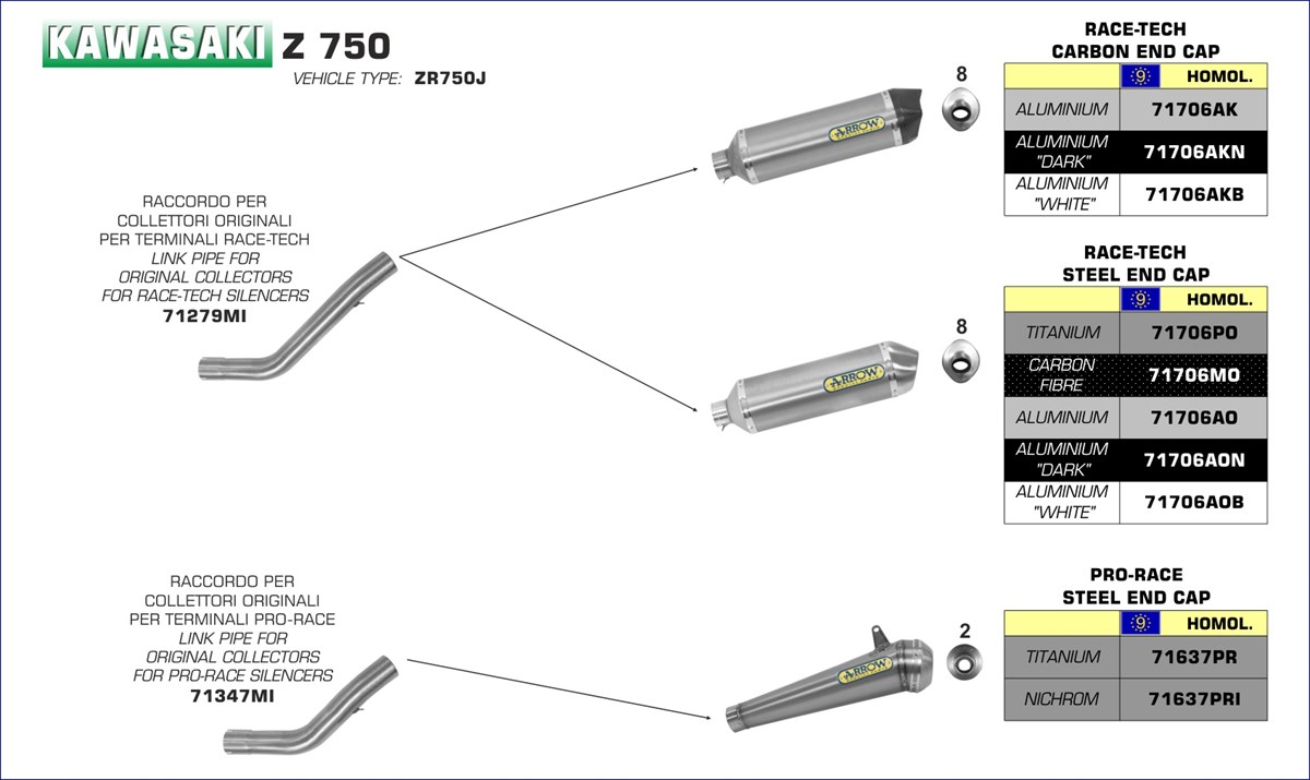 ARROW - 71637PRI TERMINALE PRO-RACE NICHROM ROAD KAWASAKI Z 750 04-06