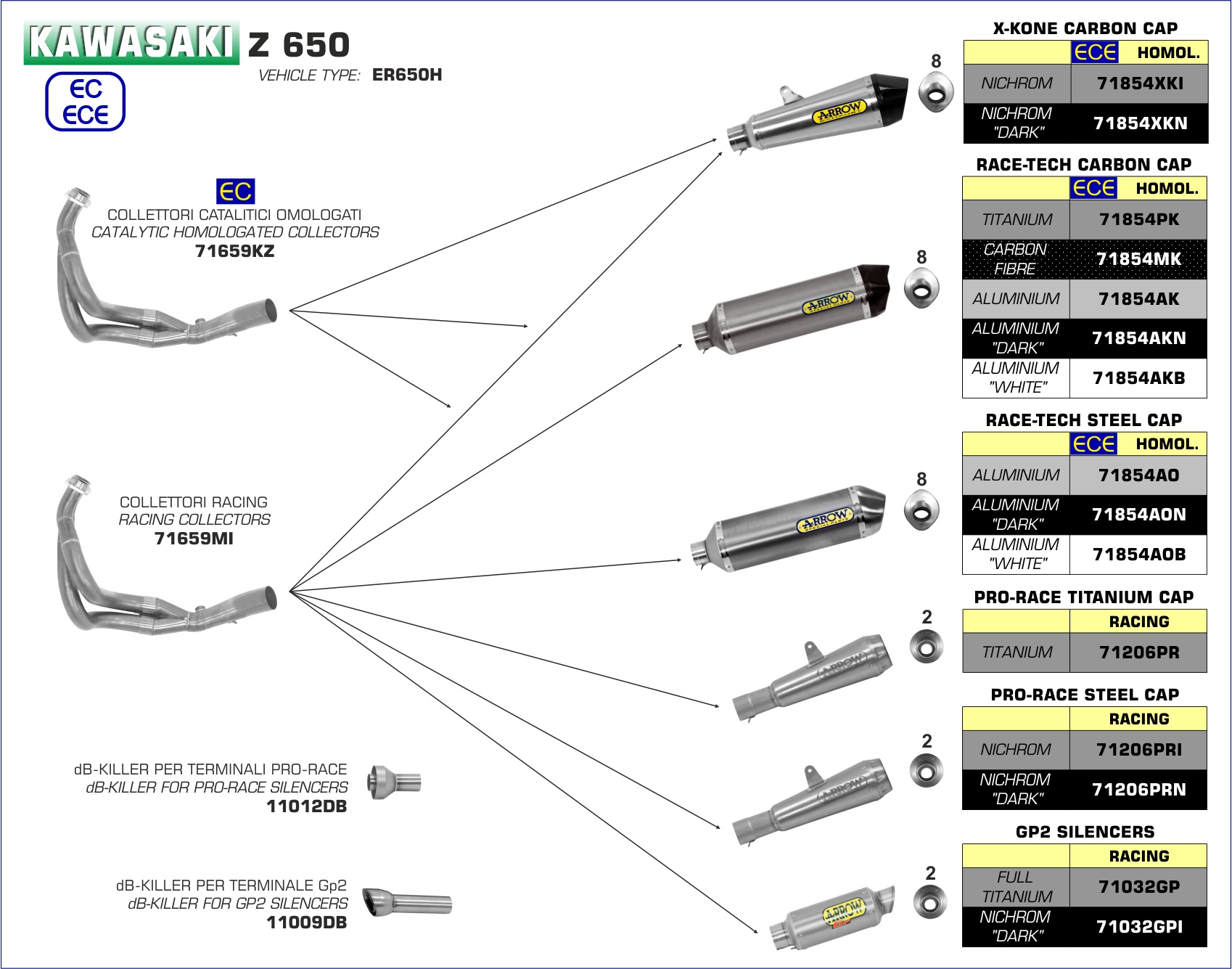 ARROW - 71659MI COLLETTORI RACING KAWASAKI Z 650 17-19