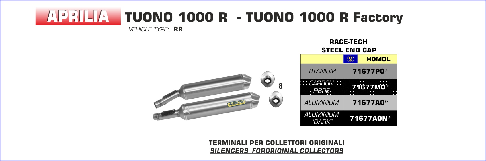ARROW - 71677AO TERMINALI RACE-TECH ALLUMINIO APRILIA RSV 1000 R / R FACTORY 04-08