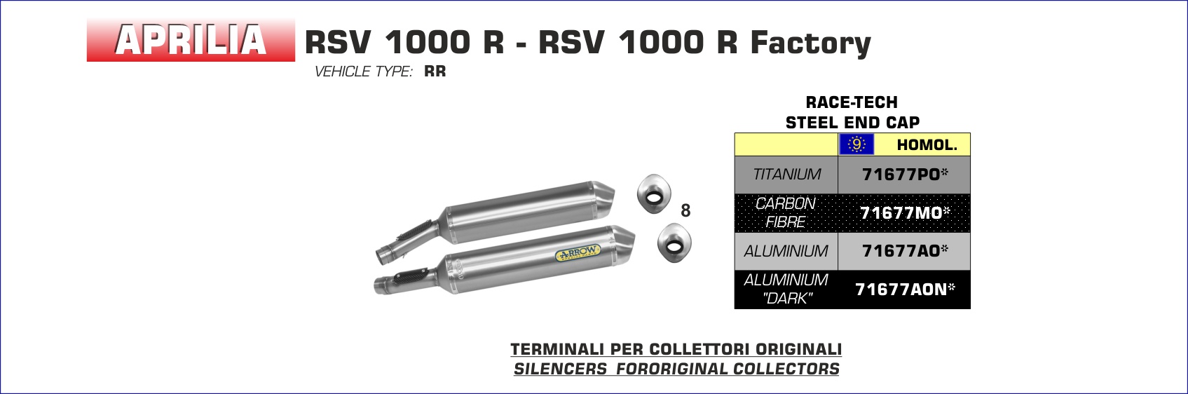 ARROW - 71677AON TERMINALE RACE-TECH ALLUMINIO NERO APRILIA RSV 1000 R / R FACTORY 04-08