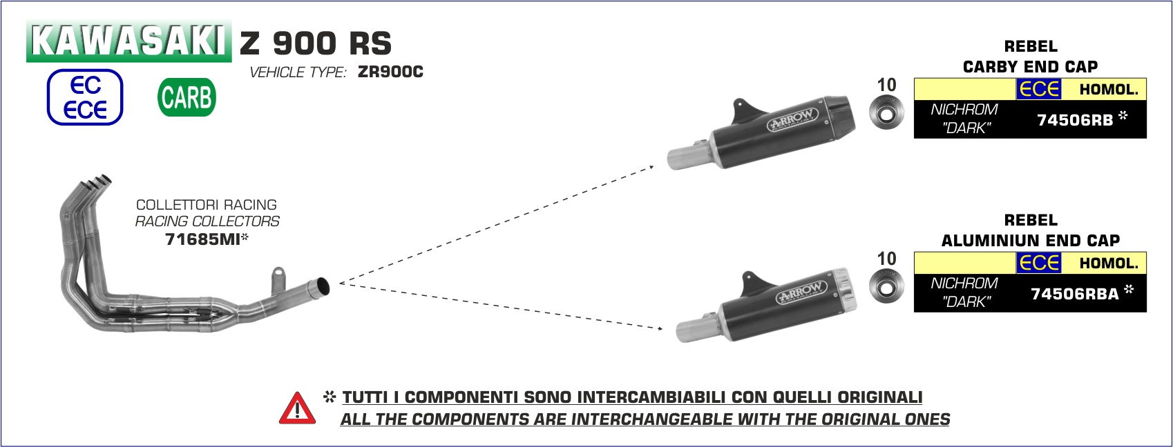 ARROW - 71685MI COLLETTORI RACING INTERCAMBIABILI GLI ORIGINALI KAWASAKI Z 900 RS 17-20