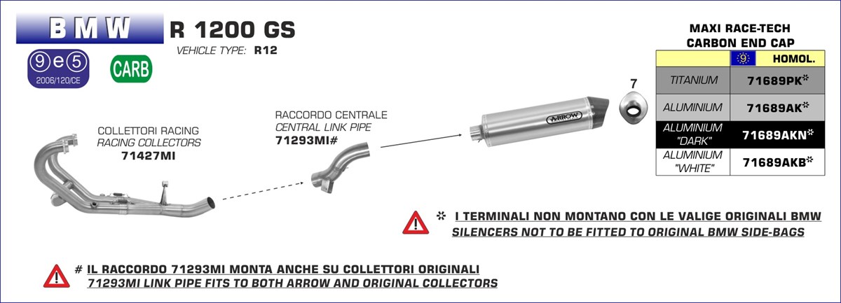 ARROW - 71689AKN TERMINALE MAXI RACE-TECH ALLUMINIO NERO FONDELLO CARBY BMW R 1200 GS 04-05