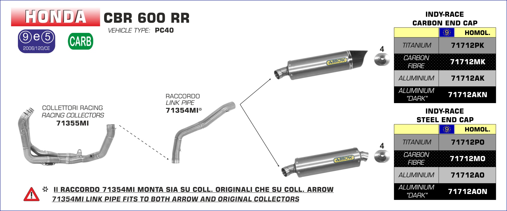 ARROW - 71712AKN TERMINALE INDY RACE ALLUMINIO NERO FONDELLO CARBY HONDA CBR 600 RR 07-08