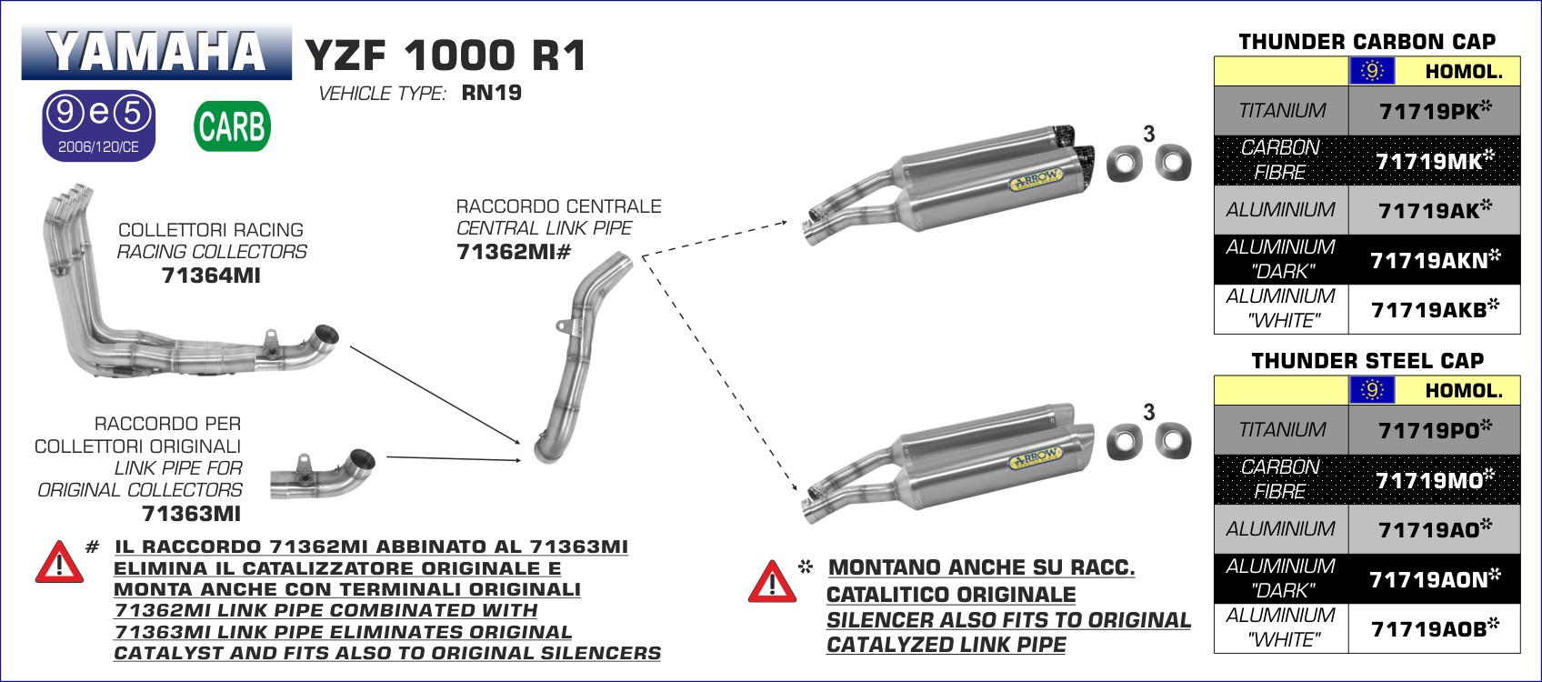 ARROW - 71719AKN TERMINALI THUNDER ALLUMINIO NERO FONDELLO CARBY YAMAHA YZF 1000 R1 07-08