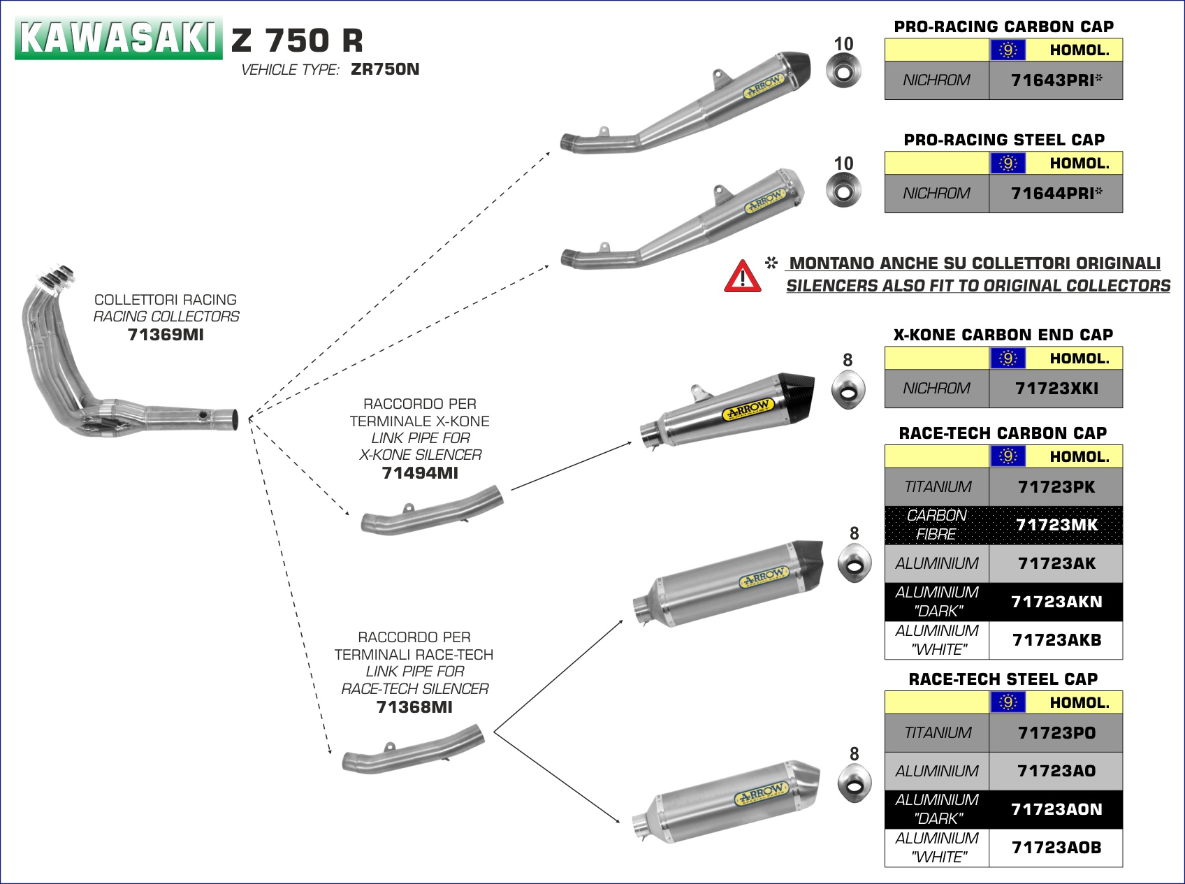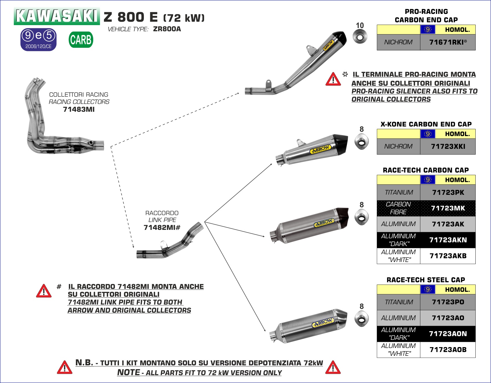 ARROW - 71723MK TERMINALE RACE-TECH CARBONIO FONDELLO CARBY KAWASAKI Z 750 07-14