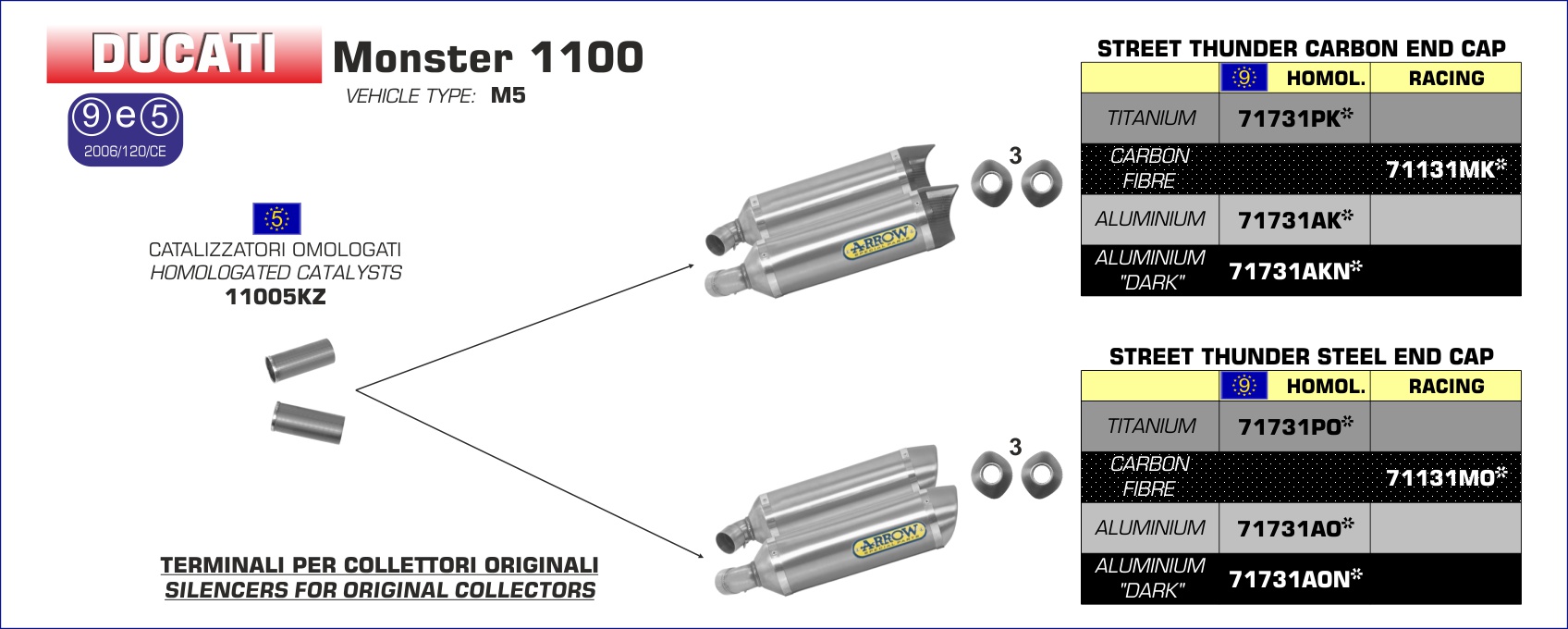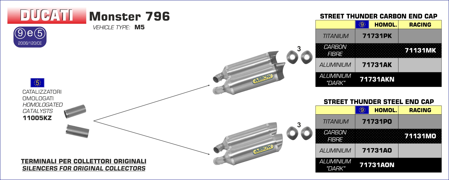 ARROW - 71731AO TERMINALI THUNDER ALLUMINIO DUCATI MONSTER 696 08-14