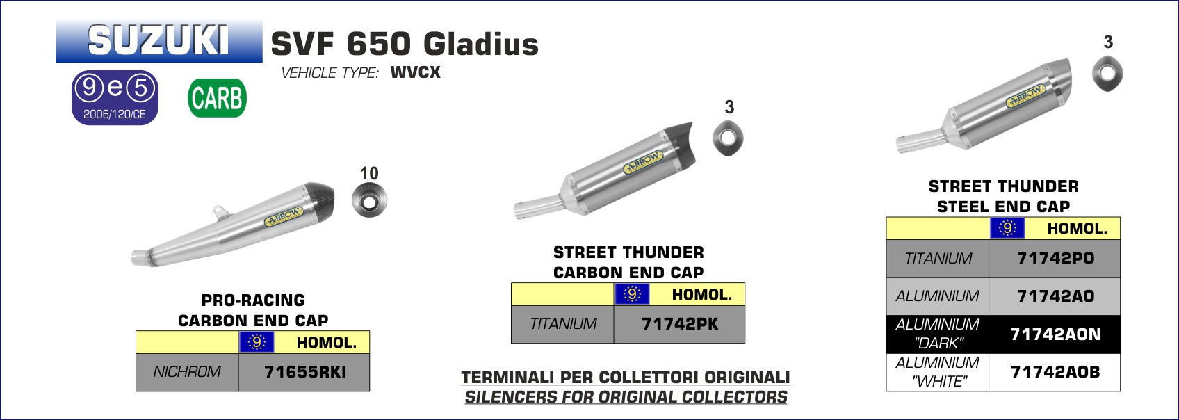ARROW - 71742PO TERMINALE STREET THUNDER TITANIO PER COLLETTORI ORIGINALI SUZUKI SVF 650 GLADIUS 09-15