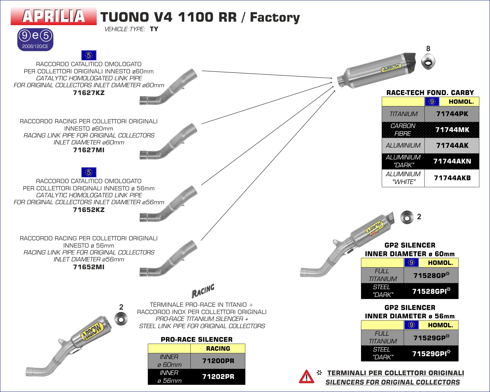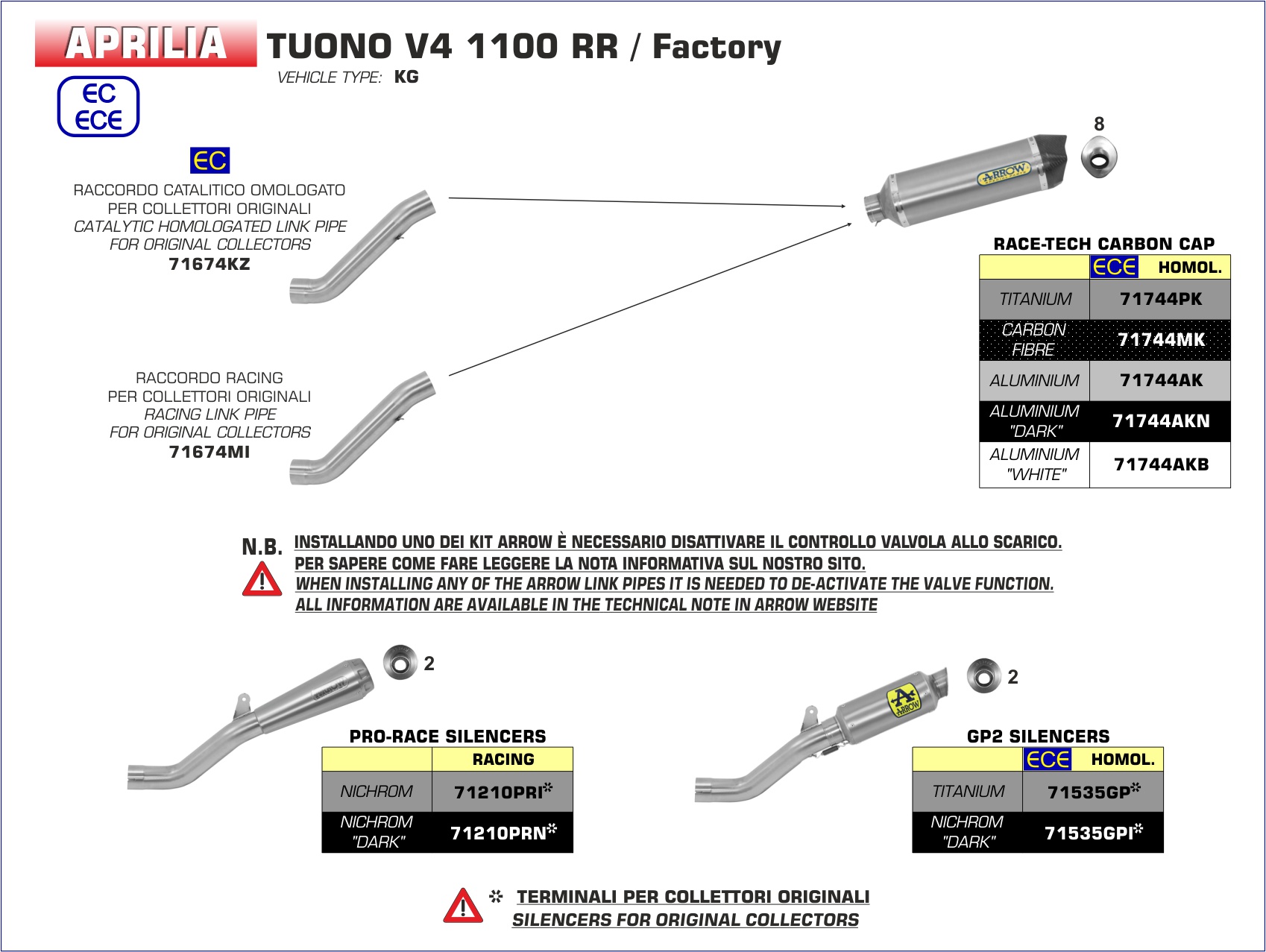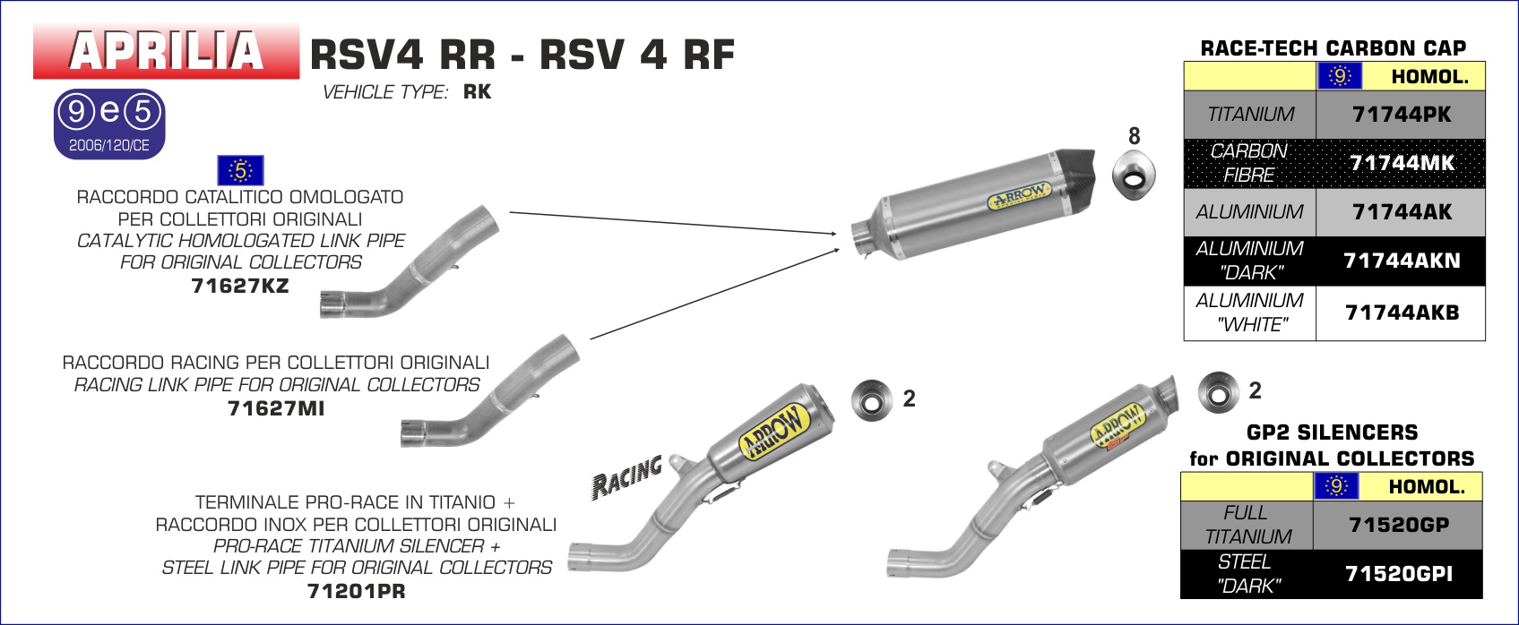 ARROW - 71744PK TERMINALE RACE-TECH TITANIO FONDELLO CARBY APRILIA RSV 4 09-15