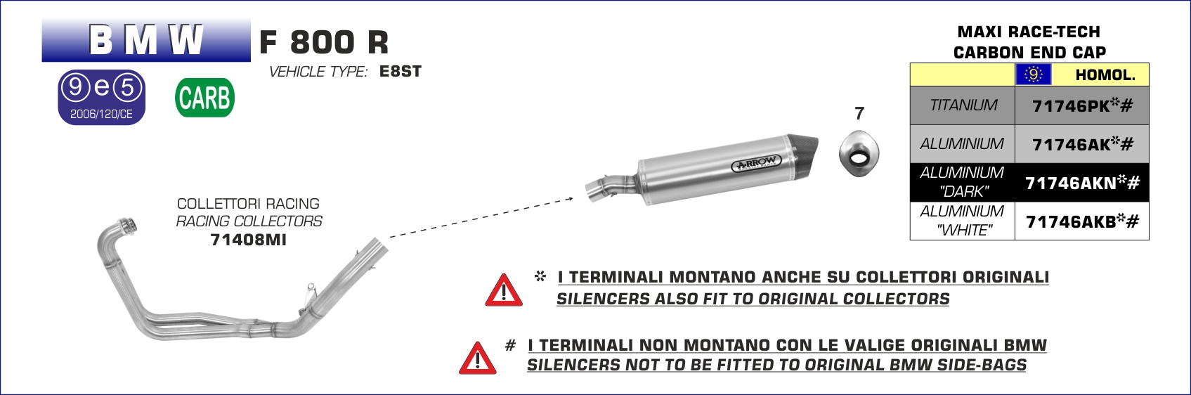 ARROW - 71746AKN TERMINALE MAXI RACE-TECH ALLUMINIO NERO FONDELLO CARBY BMW F 800 R 09-16