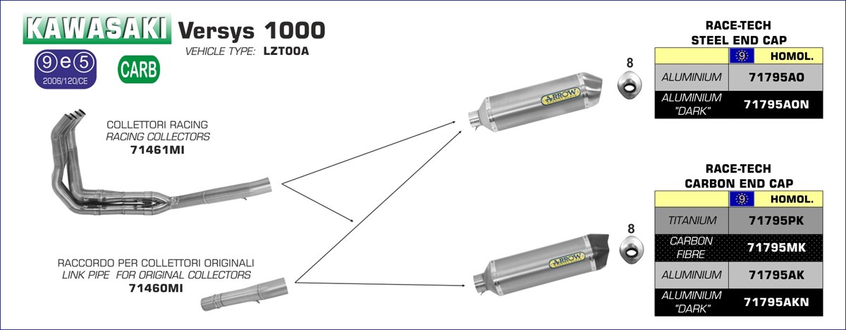 ARROW - 71795AKN TERMINALE RACE-TECH ALLUMINIO NERO FONDELLO CARBY KAWASAKI VERSYS 1000 12-14