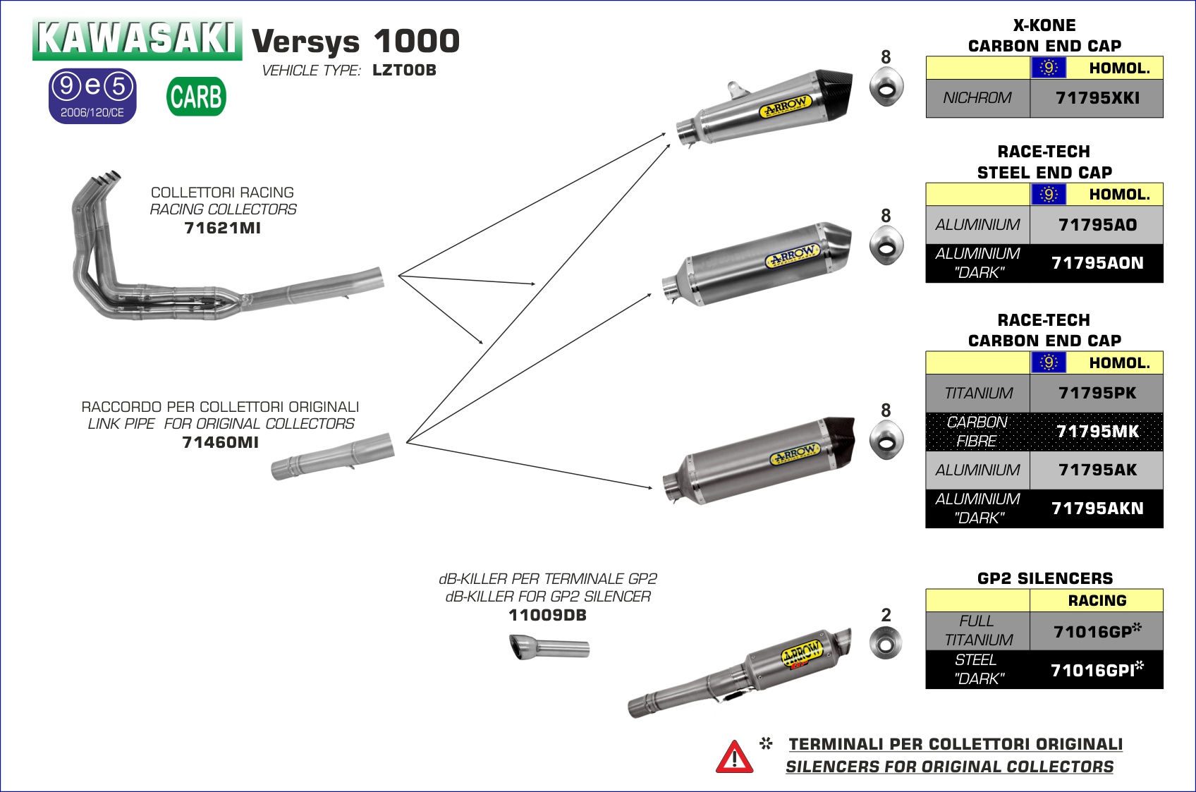 ARROW - 71795PK TERMINALE RACE-TECH TITANIO FONDELLO CARBY KAWASAKI VERSYS 1000 12-14