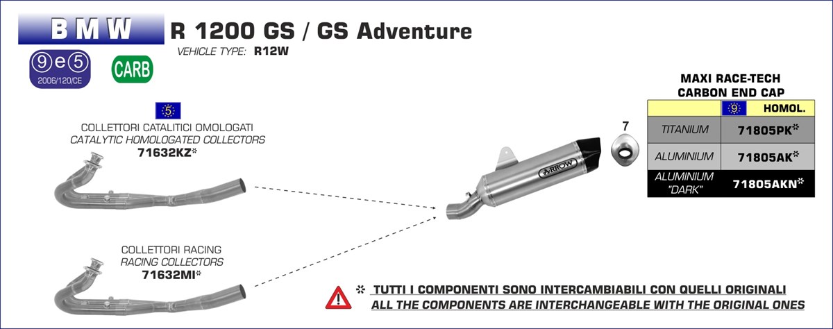 ARROW - 71805AK TERMINALE MAXI RACE-TECH ALLUMINIO FONDELLO CARBY BMW R 1200 GS 13-15