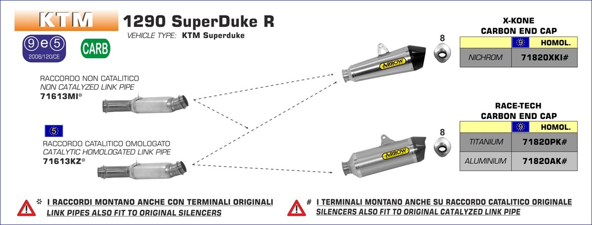 ARROW - 71820PK TERMINALE RACE-TECH IN TITANIO FONDELLO CARBY KTM 1290 SUPERDUKE 14-16