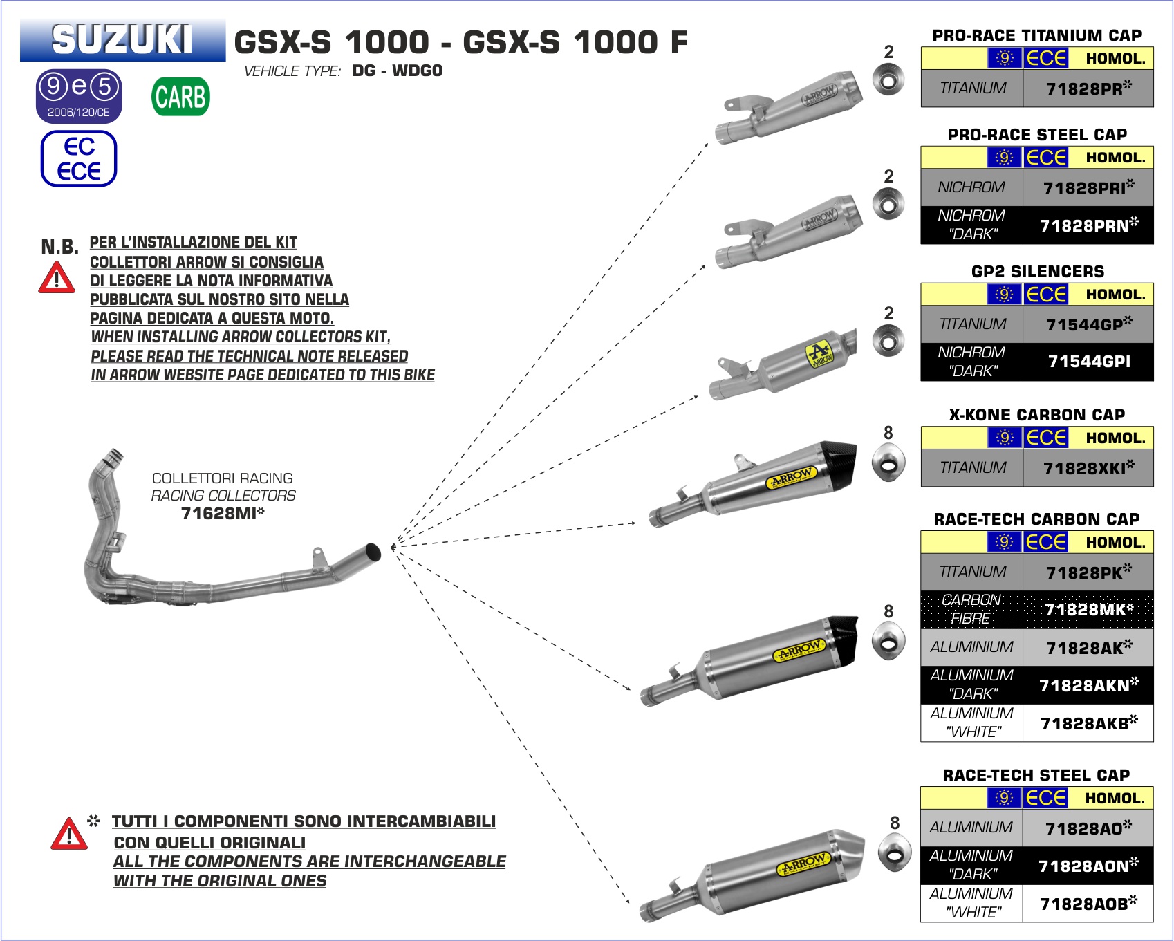 ARROW - 71828AK TERMINALE RACE-TECH ALLUMINIO FONDELLO CARBY SUZUKI GSX-S 1000 / 1000 F 15-16
