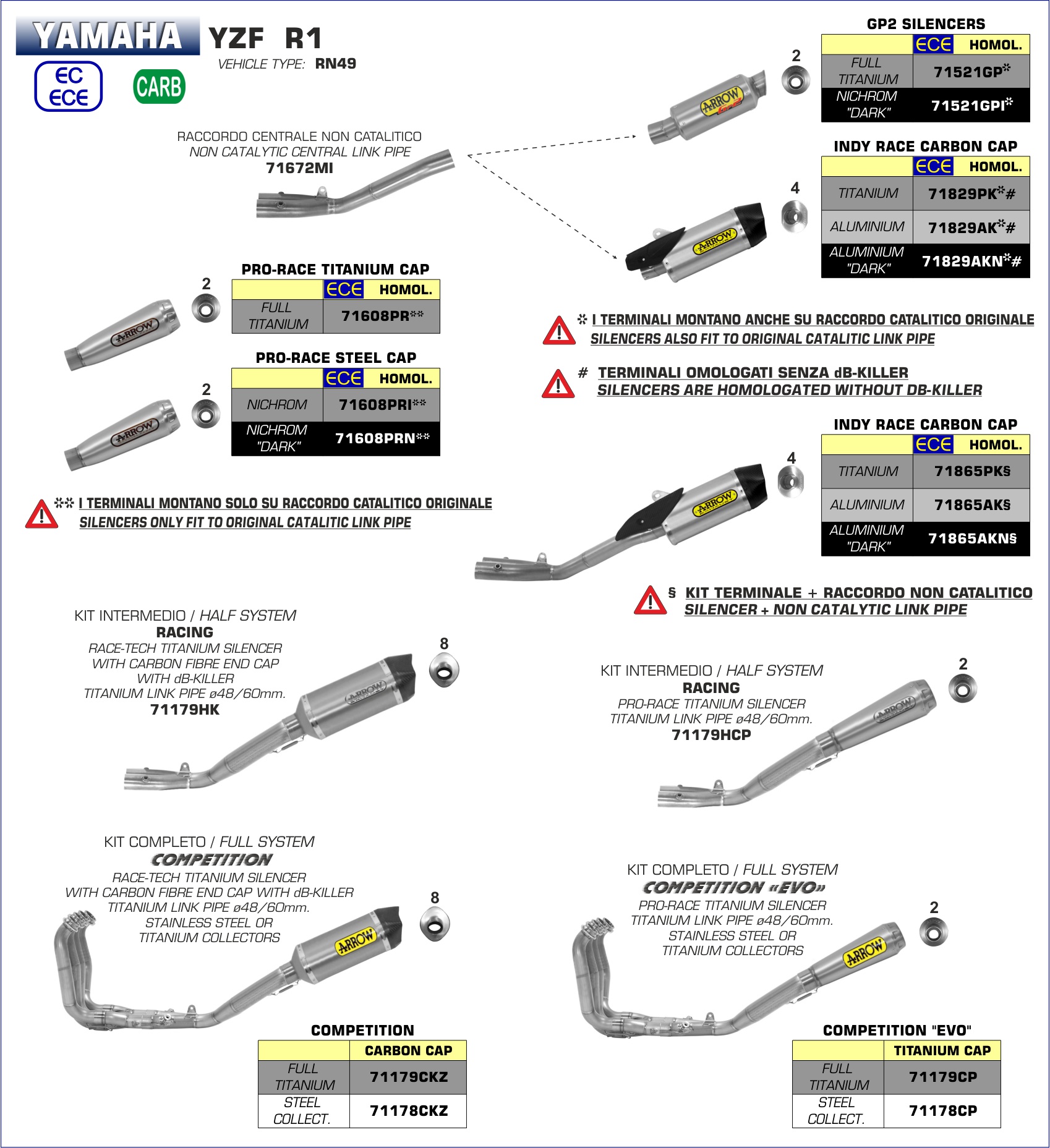 ARROW - 71829AK TERMINALE INDY RACE ALLUMINIO FONDELLO CARBY YAMAHA YZF 1000 R1 15-16