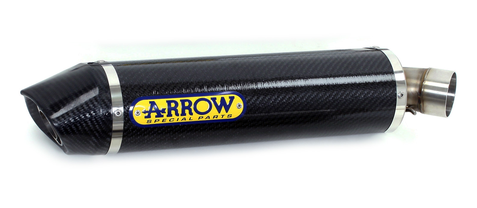 La linea Indy-Race nasce per applicazioni particolari, soprattutto sotto-sella, dove risulta pi complesso utilizzare le altre forme standard di Arrow. La sua nuova sezione, che richiama l?ovale di alcune piste della formula Indy, da cui il nome, pi schiacciata rispetto alle altre e mantiene un buon volume interno da sfruttare per ridurre le emissioni sonore. I componenti interni sono in acciaio inox assemblati mediante saldatura TIG e MIG mentre il corpo silenziatore, leggerissimo, disponibile in titanio, alluminio o fibra di carbonio. Su alcune installazioni possibile avere il fondello posteriore in fibra di carbonio. Gli scarichi della linea Indy-Race sono disponibili anche in versione omologata, a seconda dell?applicazione, con dB-Killer estraibile.