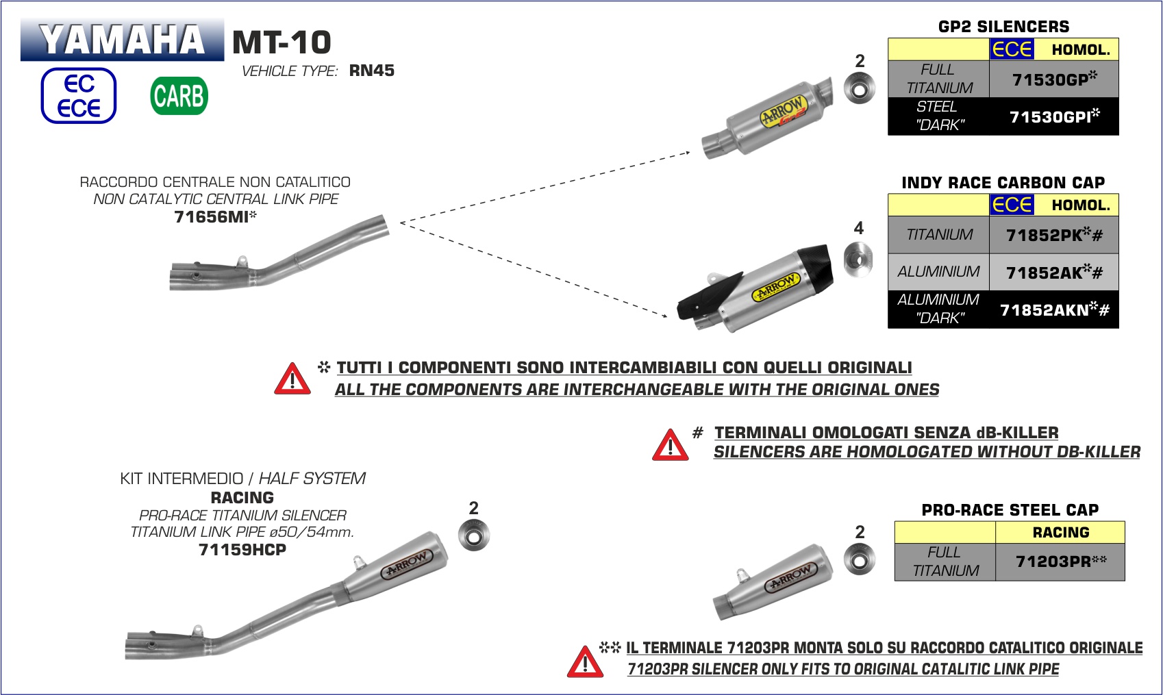 ARROW - 71852PK TERMINALE INDY RACE TITANIO FONDELLO CARBY YAMAHA MT-10 16-20