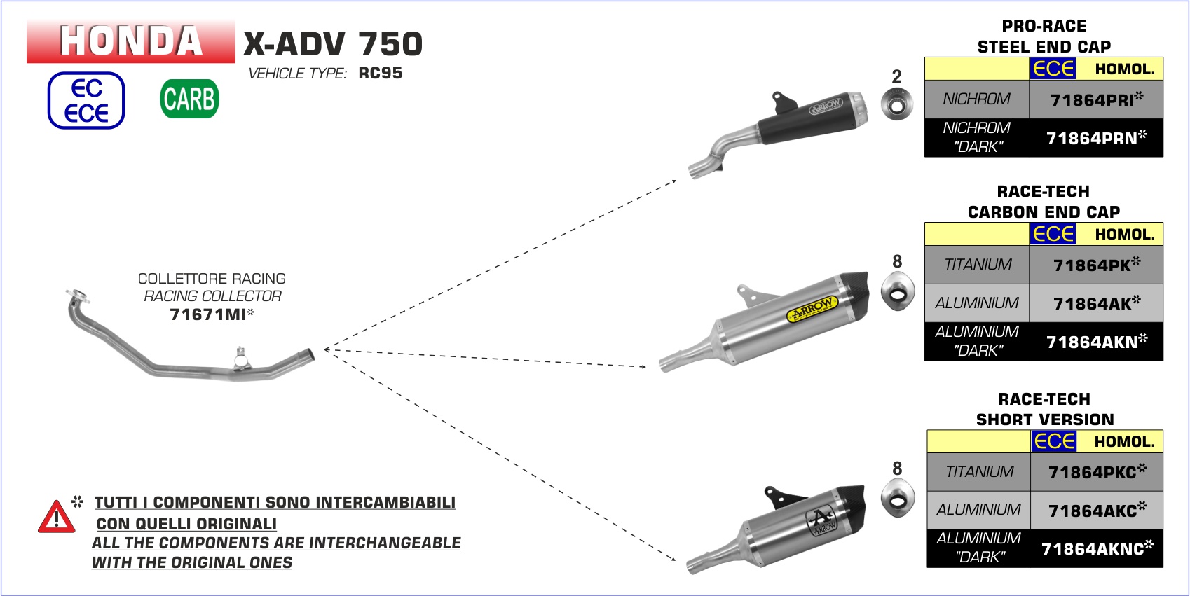 ARROW - 71864AK TERMINALE RACE-TECH ALLUMINIO FONDELLO CARBY HONDA X-ADV 750 17-20
