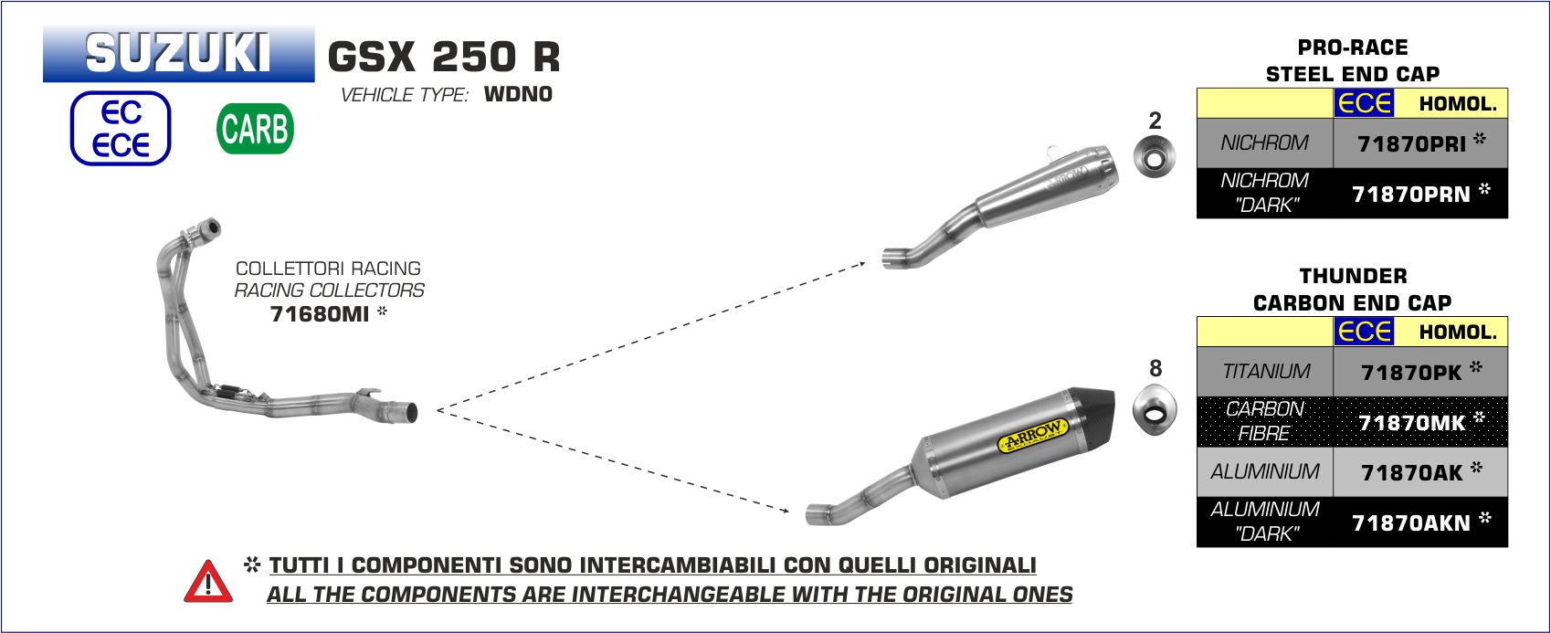 ARROW - 71870PRN TERMINALE PRO-RACE NICHROM NERO SUZUKI GSX 250 R 17-20