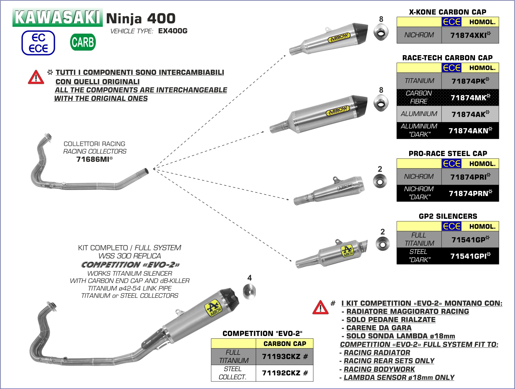 ARROW - 71874XKI TERMINALE X-KONE KAWASAKI NINJA 400 18-20