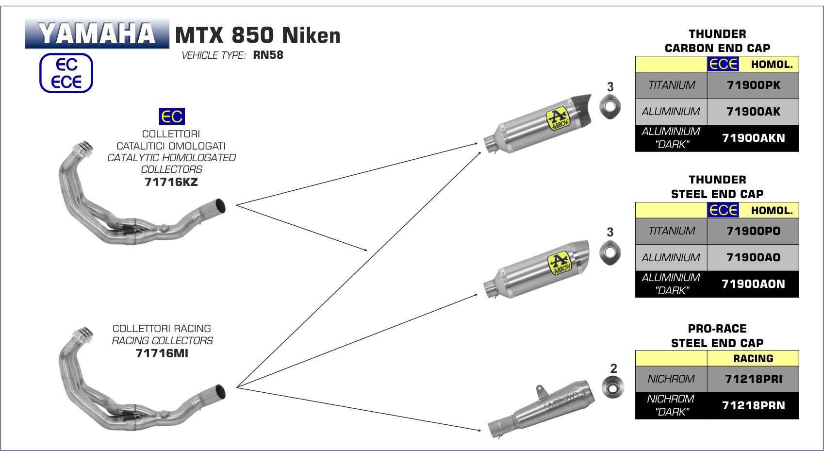 ARROW - 71900AK TERMINALE THUNDER ALLUMINIO FONDELLO CARBY YAMAHA MTX 850 NIKEN 18-20