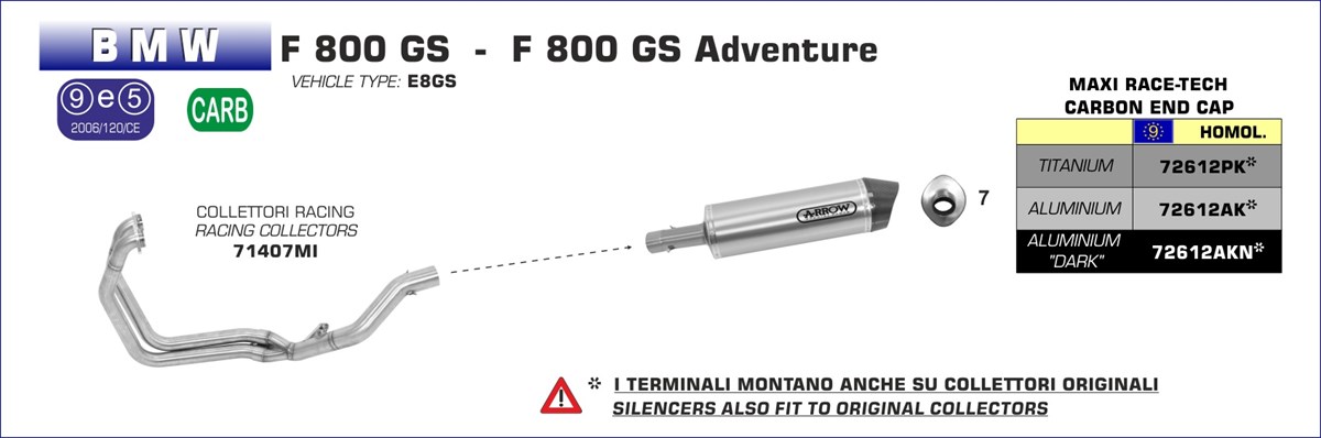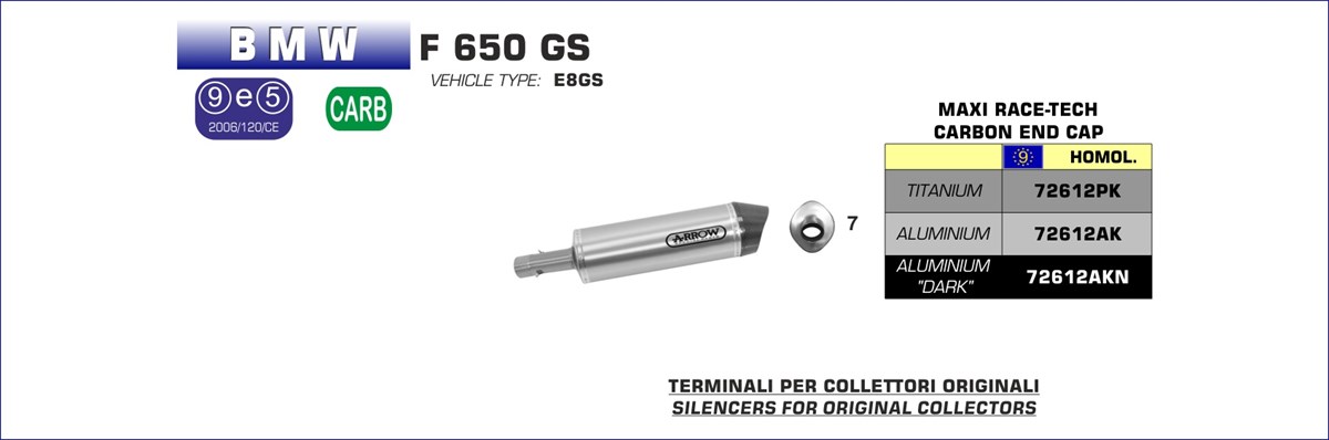 ARROW - 72612AKN TERMINALE MAXI RACE-TECH ALLUMINIO NERO FONDELLO CARBY BMW F 650 GS 08-12