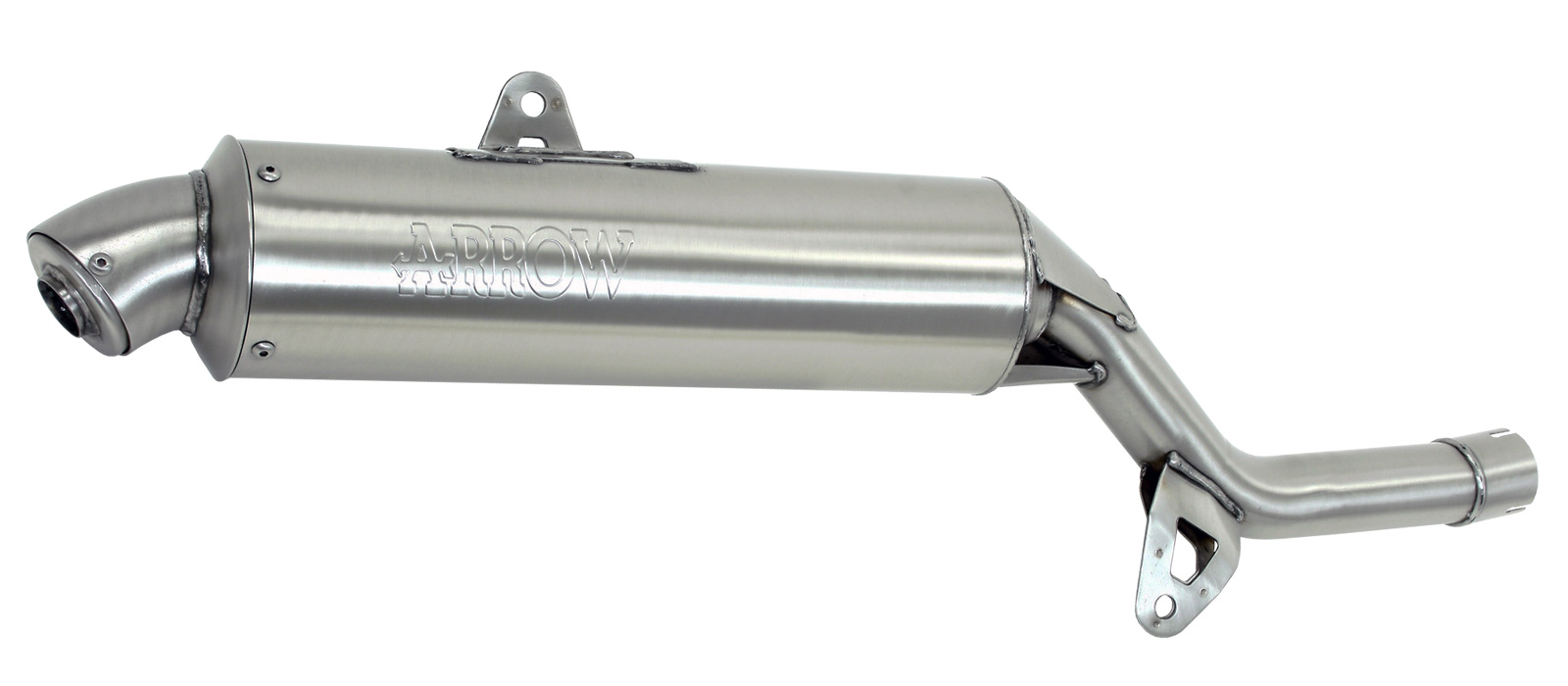 Pietra miliare della produzione Arrow per moto fuoristrada, gli scarichi Parigi Dakar Replica, dopo tanti anni di successi commerciali, sono ancora ai vertici di gradimento degli appassionati di enduro e rally. Uniscono infatti una eccellente affidabilit , determinata dalla realizzazione totalmente artigianale in acciaio inox e assemblaggi eseguiti in dima mediante saldature TIG e MIG manuali, a prestazioni di assoluto rilievo. Il corpo marmitta a sezione cilindrica con terminale fissato tramite viti per agevolare lo smontaggio e la sostituzione del materiale fonoassorbente. Nella parte finale inserita una cartuccia di silenziamento supplementare, facilmente asportabile, che abbatte ulteriormente la rumorosit . Le Parigi Dakar Replica incrementano delle prestazioni del motore ai bassi e medi regimi, con un sensibile miglioramento anche della potenza massima ed un notevole risparmio di peso rispetto all?originale.