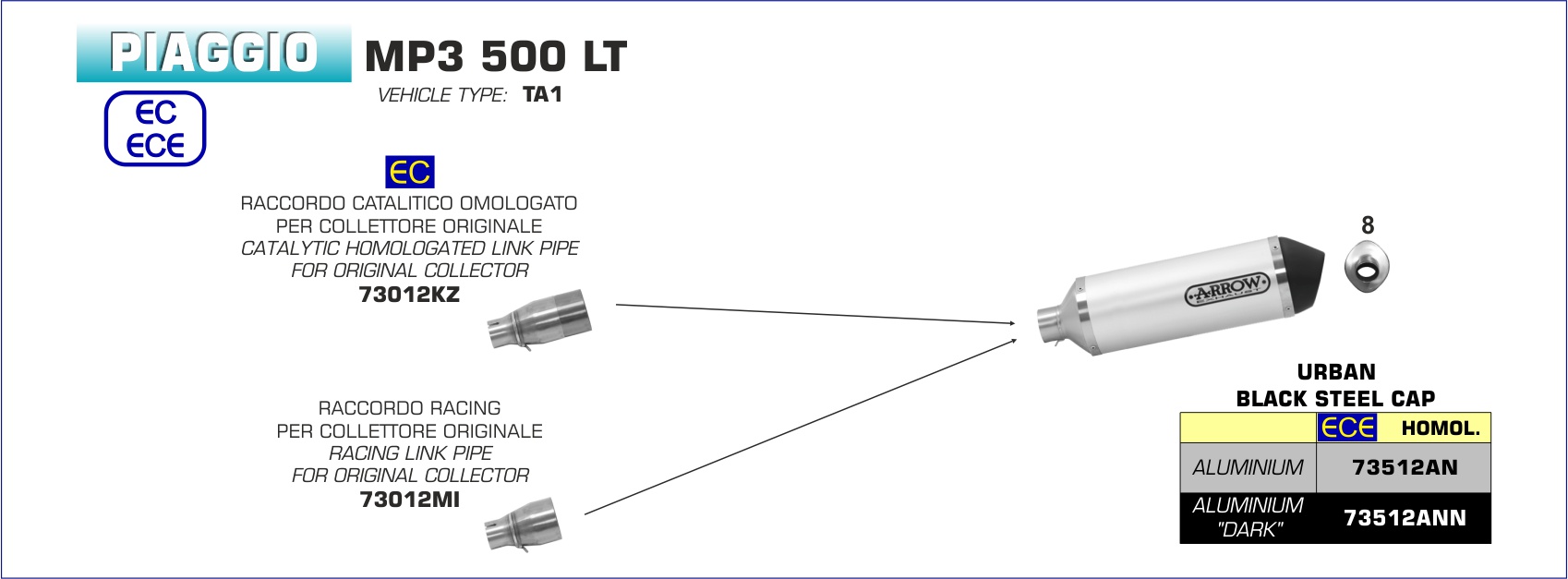 ARROW - 73012KZ RACCORDO CATALITICO OMOLOGATO PER SCARICO URBAN PIAGGIO MP3 500 LT 17-18