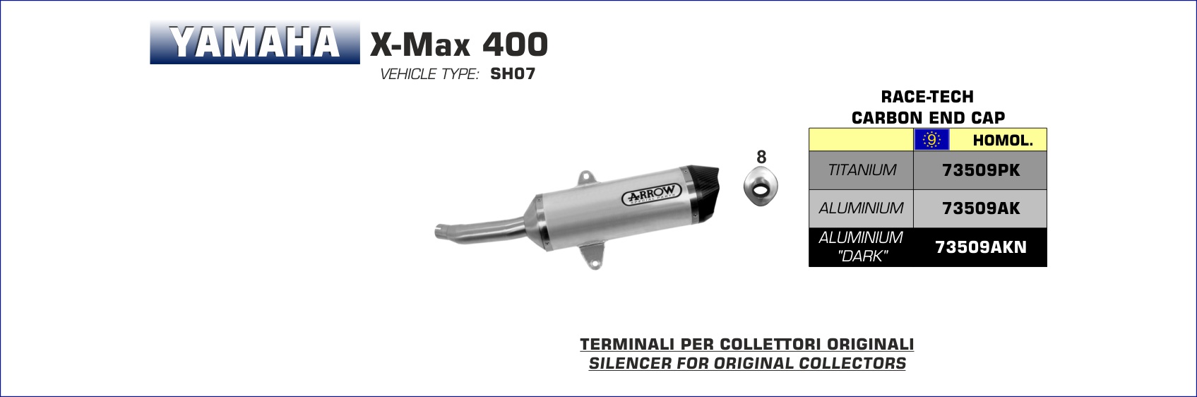 ARROW - 73509AKN TERMINALE RACE-TECH ALLUMINIO NERO FONDELLO CARBY YAMAHA X-MAX 400 13-16