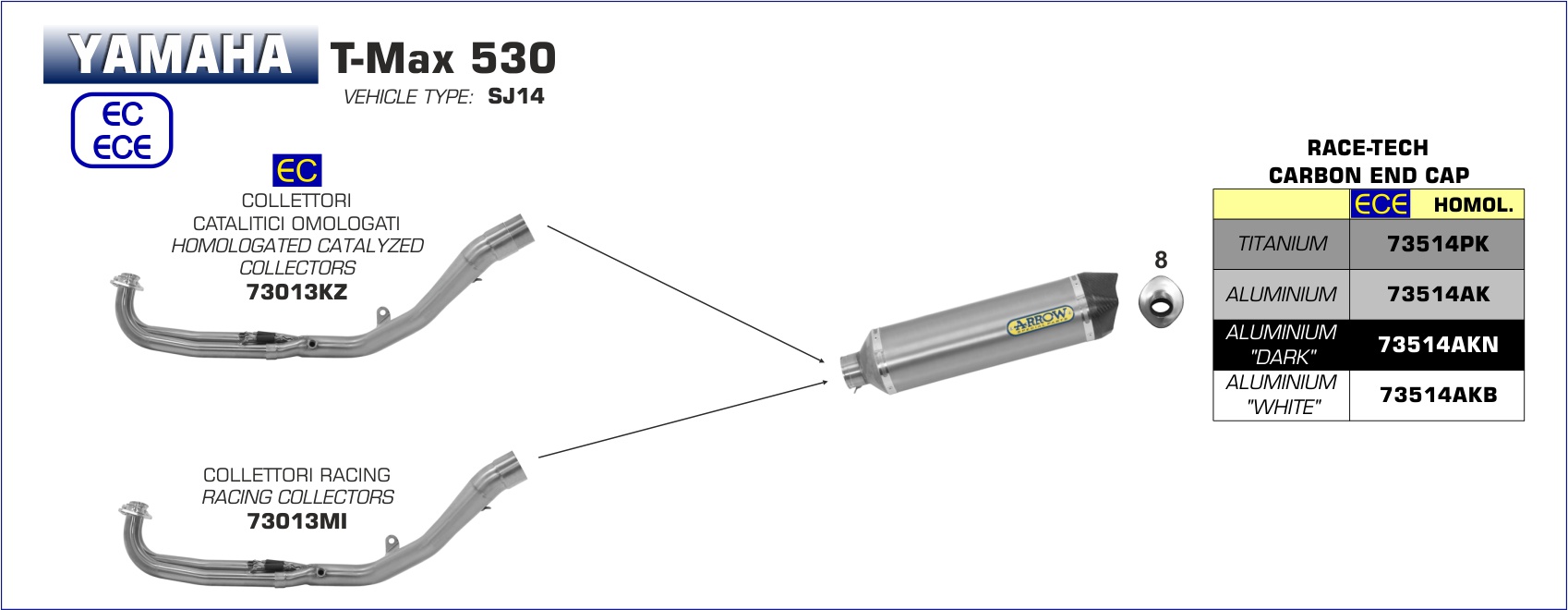 ARROW - 73514PK TERMINALE RACE-TECH IN TITANIO FONDELLO CARBY YAMAHA T-MAX 530 17-20