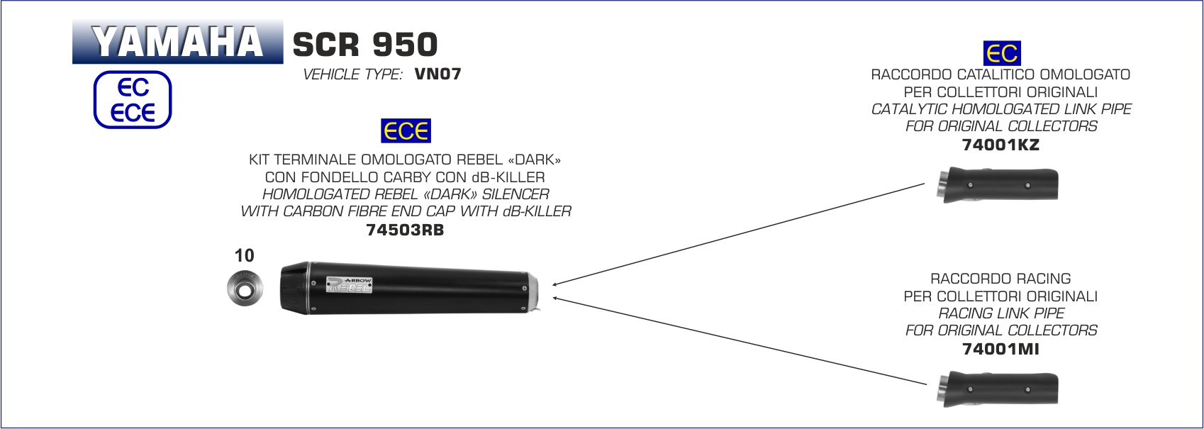 ARROW - 74001KZ RACCORDO CATALITICO OMOLOGATO PER COLLETTORI ORIGINALI YAMAHA SCR 950 17-20