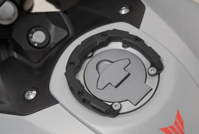 Il meccanismo di blocco meccanico fissa la borsa serbatoio e i magneti uniscono le due parti dell'anello. La robusta struttura in plastica rinforzata in fibra di vetro, con una geometria d'incastro di elevata precisione, garantisce che la borsa serbatoio rimanga saldamente in posizione con qualsiasi condizione stradale.