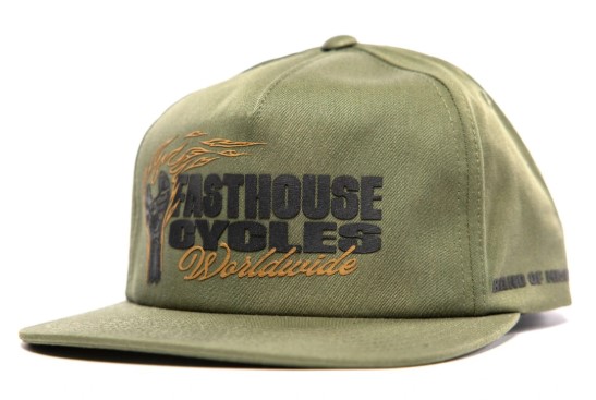 - Patch Frontale Iconica: Ampia patch rettangolare con il logo Fasthouse e il leggendario motto "Speed, Style, Good Times" in bianco nitido a contrasto.