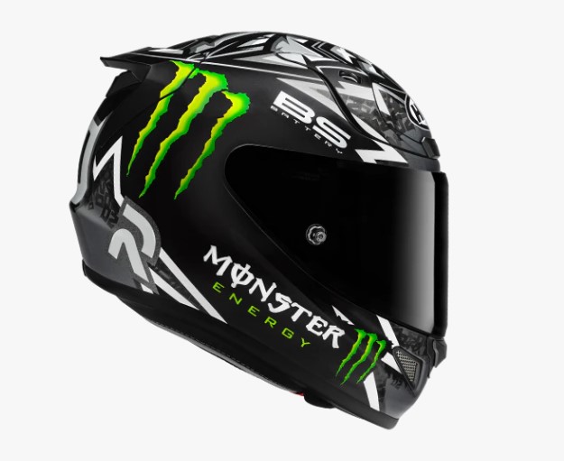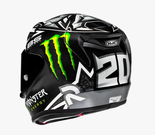 Design rifinito in nero lucido, argento e bianco, per un look fresco e moderno sulla strada. Si distingue per un elegante bordo argentato che mette in risalto il logo "El Diablo" di Fabio Quartararo, insieme al numero “20” sul retro. I loghi su licenza Monster Energy e BS Battery sui lati completano lo stile distintivo del casco, ideale per gli amanti della competizione e della velocità.