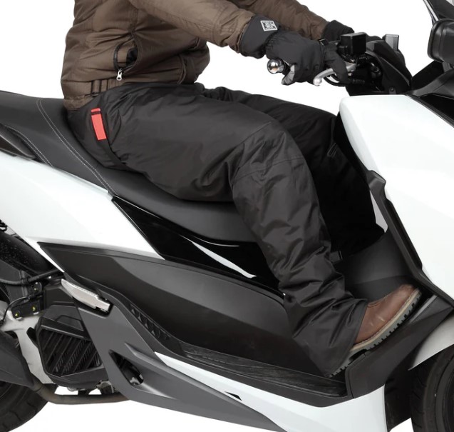 Coprigambe universale da indossare, privo di punti di fissaggio a moto/scooter.