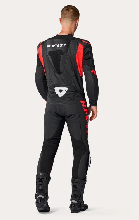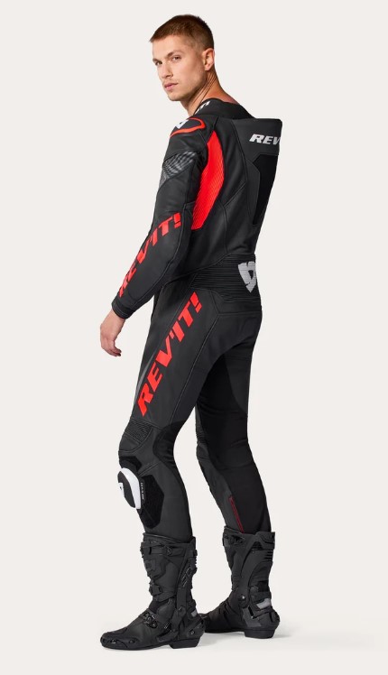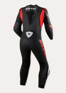 REV'IT - TUTA MOTO IN PELLE INTERA ARGON 3 - NERO/ROSSO FLUO